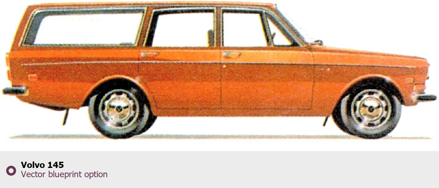 Raster blueprint of the Volvo 145 Tag. This free downloadable image can be used for graphic projects, digital design, and 3D modeling. The file provides accurate exterior proportions of the vehicle. Body type: Tag.