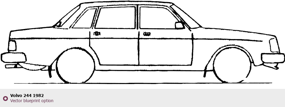 Raster blueprint of the 1982 Volvo 244 Tag. This free downloadable image can be used for graphic projects, digital design, and 3D modeling. The file provides accurate exterior proportions of the vehicle. Model year: 1982. Body type: Tag.