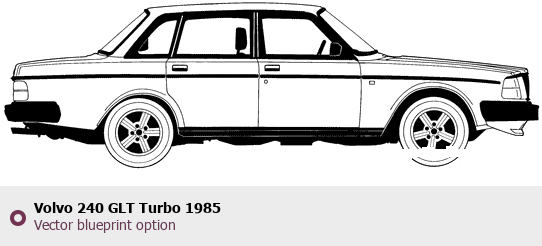 Raster blueprint of the 1985 Volvo 240 GLT Turbo Tag. This free downloadable image can be used for graphic projects, digital design, and 3D modeling. The file provides accurate exterior proportions of the vehicle. Model year: 1985. Body type: Tag.