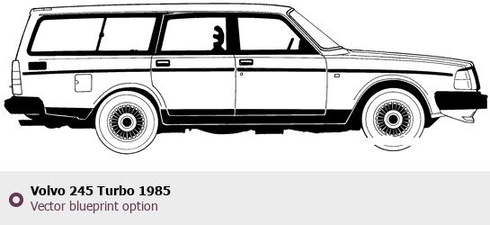 Raster blueprint of the 1985 Volvo 245 Turbo Tag. This free downloadable image can be used for graphic projects, digital design, and 3D modeling. The file provides accurate exterior proportions of the vehicle. Model year: 1985. Body type: Tag.