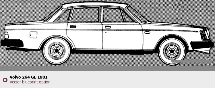Raster blueprint of the 1981 Volvo 264 GL Tag. This free downloadable image can be used for graphic projects, digital design, and 3D modeling. The file provides accurate exterior proportions of the vehicle. Model year: 1981. Body type: Tag.