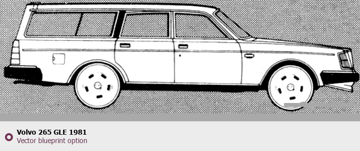 Raster blueprint of the 1981 Volvo 265 GLE Tag. This free downloadable image can be used for graphic projects, digital design, and 3D modeling. The file provides accurate exterior proportions of the vehicle. Model year: 1981. Body type: Tag.