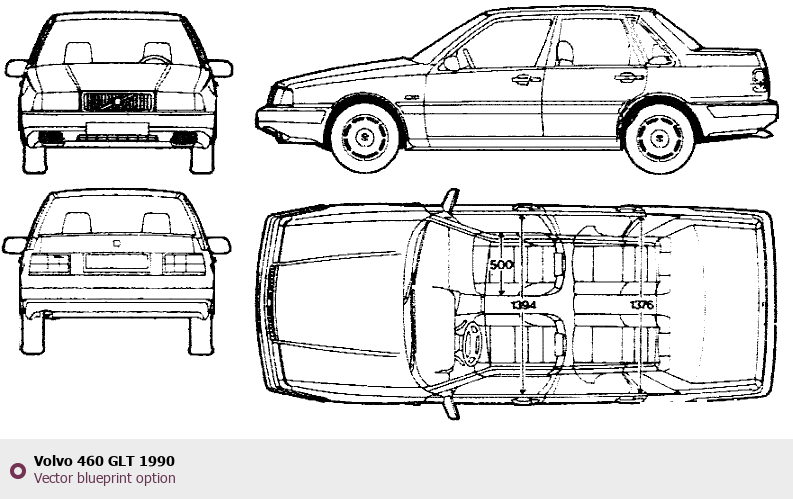 Raster blueprint of the 1990 Volvo 460 GLT Tag. This free downloadable image can be used for graphic projects, digital design, and 3D modeling. The file provides accurate exterior proportions of the vehicle. Model year: 1990. Body type: Tag.