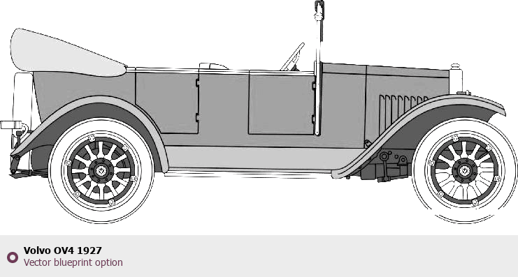 Raster blueprint of the 1927 Volvo OV4 Tag. This free downloadable image can be used for graphic projects, digital design, and 3D modeling. The file provides accurate exterior proportions of the vehicle. Model year: 1927. Body type: Tag.