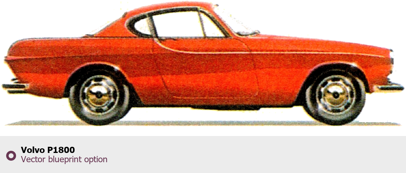 Raster blueprint of the Volvo P1800 Tag. This free downloadable image can be used for graphic projects, digital design, and 3D modeling. The file provides accurate exterior proportions of the vehicle. Body type: Tag.