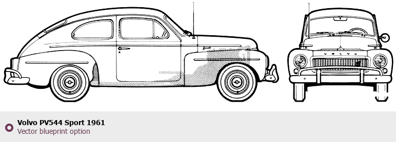 Raster blueprint of the 1961 Volvo PV544 Sport Tag. This free downloadable image can be used for graphic projects, digital design, and 3D modeling. The file provides accurate exterior proportions of the vehicle. Model year: 1961. Body type: Tag.