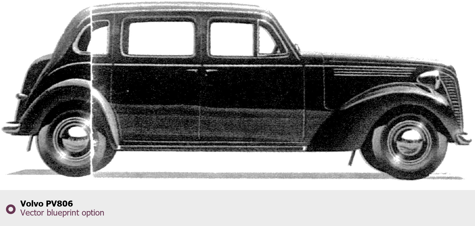 Raster blueprint of the Volvo PV806 Tag. This free downloadable image can be used for graphic projects, digital design, and 3D modeling. The file provides accurate exterior proportions of the vehicle. Body type: Tag.