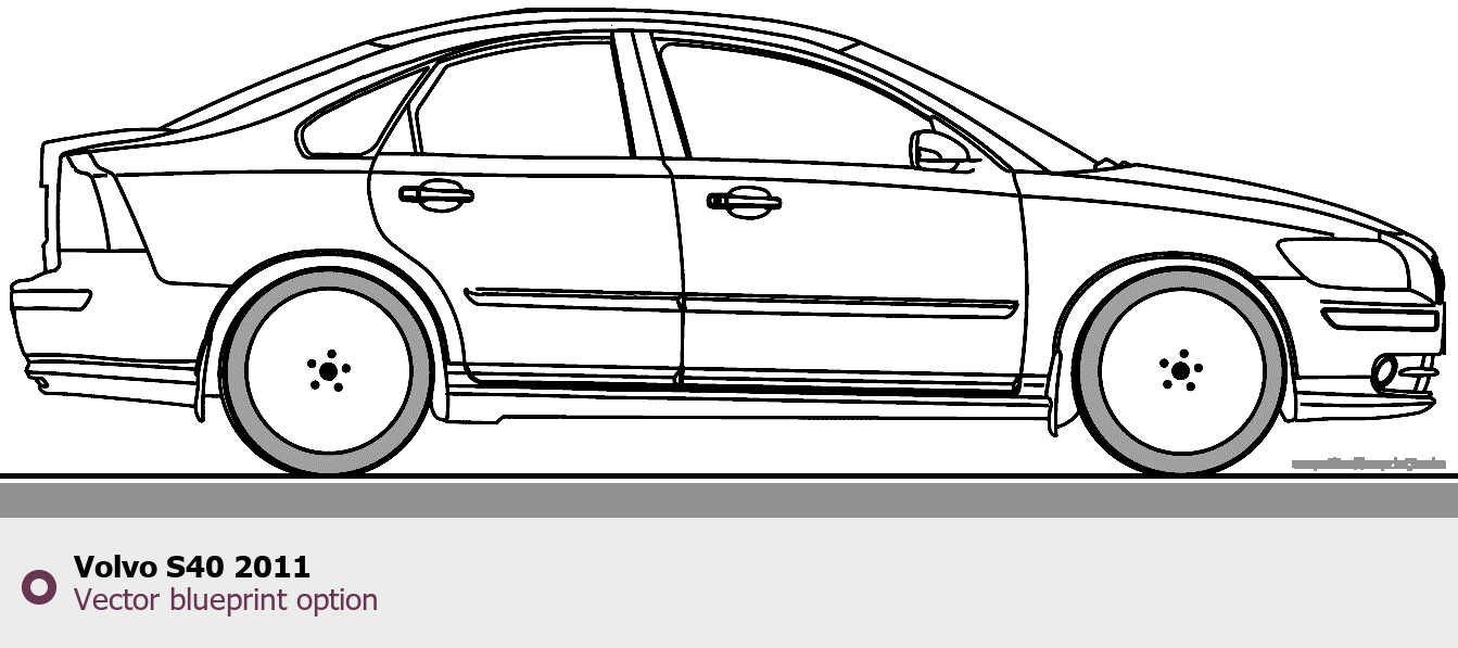 Raster blueprint of the 2011 Volvo S40 Sedan. This free downloadable image can be used for graphic projects, digital design, and 3D modeling. The file provides accurate exterior proportions of the vehicle. Model year: 2011. Body type: Sedan.