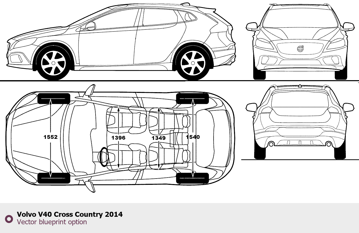 Raster blueprint of the 2014 Volvo V40 Cross Country Tag. This free downloadable image can be used for graphic projects, digital design, and 3D modeling. The file provides accurate exterior proportions of the vehicle. Model year: 2014. Body type: Tag.
