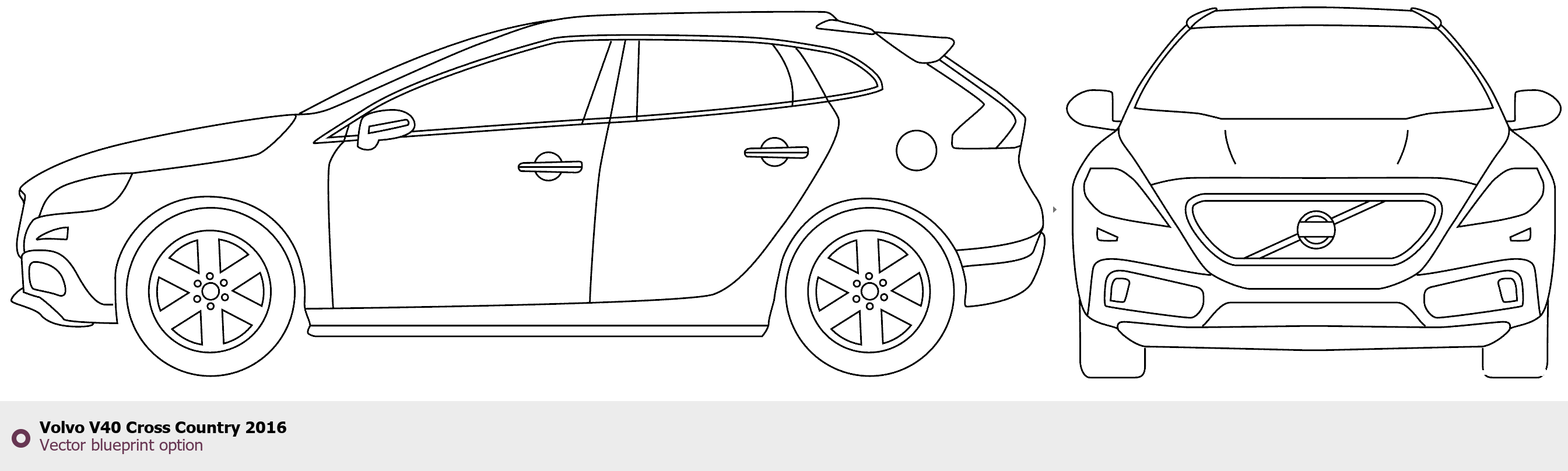 Raster blueprint of the 2016 Volvo V40 Cross Country Tag. This free downloadable image can be used for graphic projects, digital design, and 3D modeling. The file provides accurate exterior proportions of the vehicle. Model year: 2016. Body type: Tag.