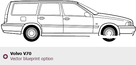 Raster blueprint of the Volvo V70 Wagon. This free downloadable image can be used for graphic projects, digital design, and 3D modeling. The file provides accurate exterior proportions of the vehicle. Body type: Wagon.