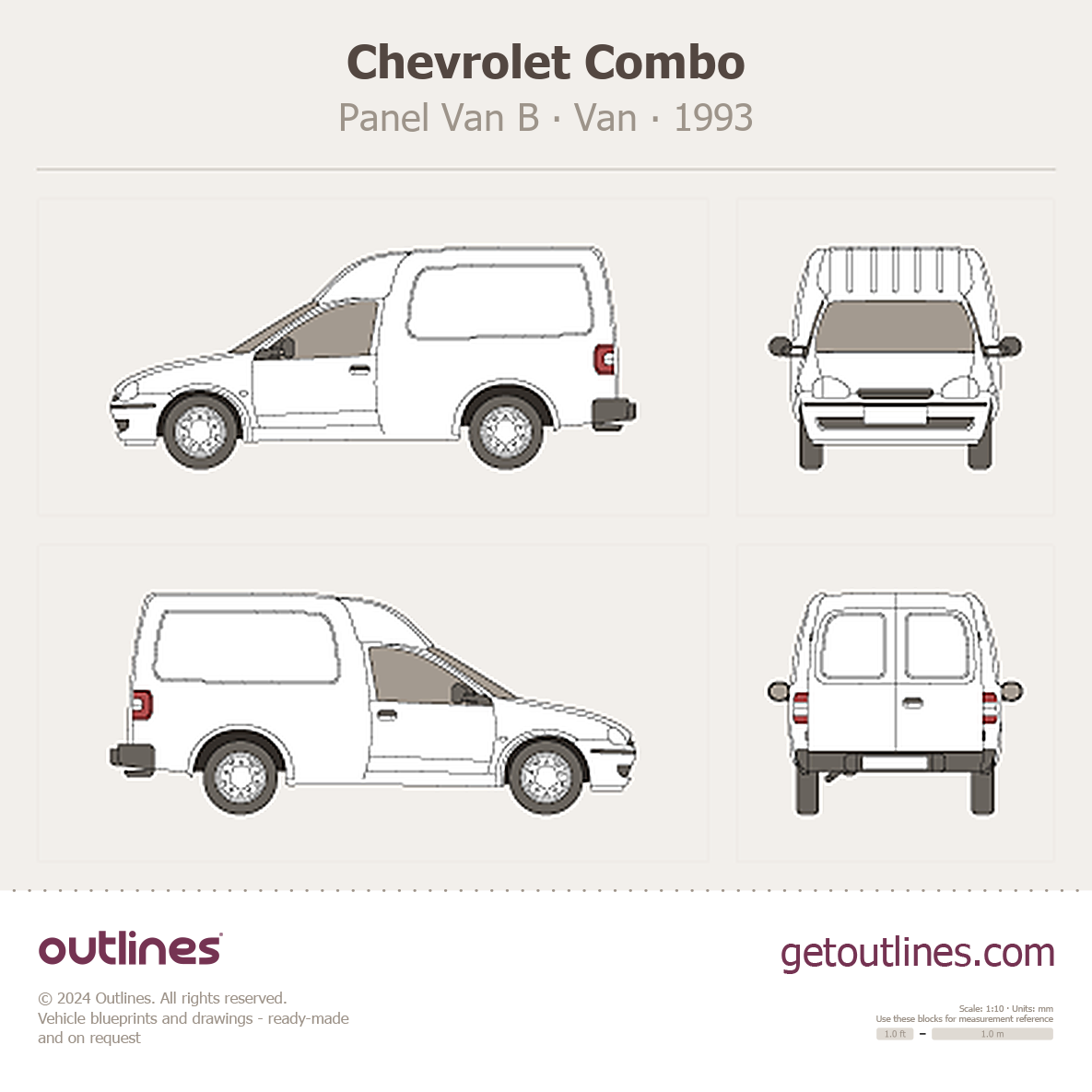 This is a blueprint of the Combo, produced by carmaker Chevrolet in 1993 - 2001. It features a Van body design and is classified as a Commercial vehicle.