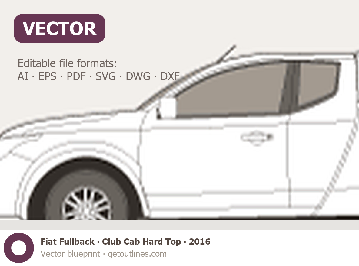 This 2016 Fiat Fullback Club Cab Hard Top Pickup Truck blueprint helps designers, wrap studios, and 3D artists simplify their workflow and save valuable time for creative work instead of routine tasks.