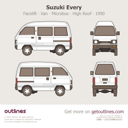 Buy this Suzuki Every Facelift blueprint and line drawing in high-quality editable vector file formats. Best for 3D and car wrap design.
