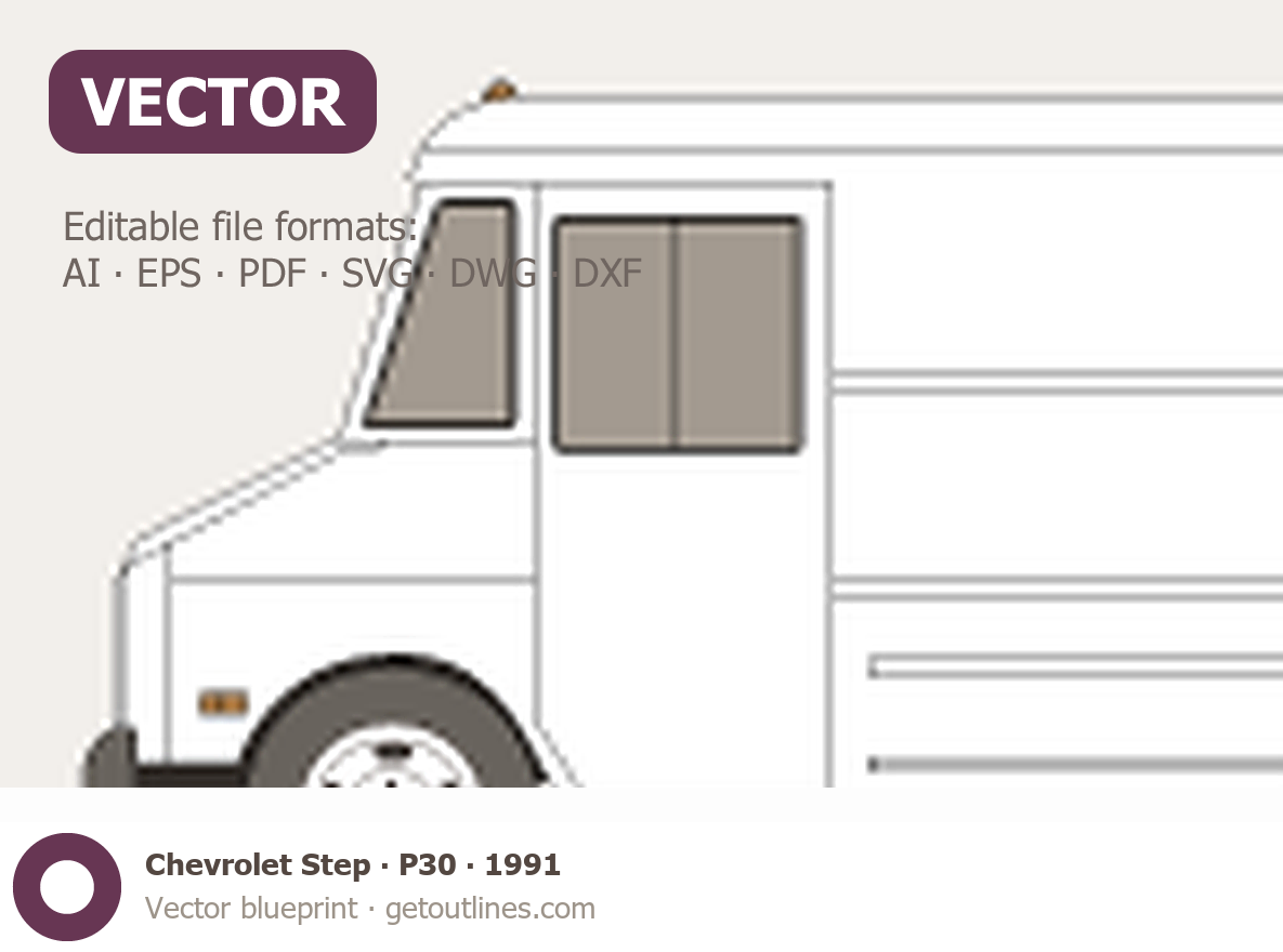 This 1991 Chevrolet Step-Van P30 Step Van blueprint helps designers, wrap studios, and 3D artists simplify their workflow and save valuable time for creative work instead of routine tasks.