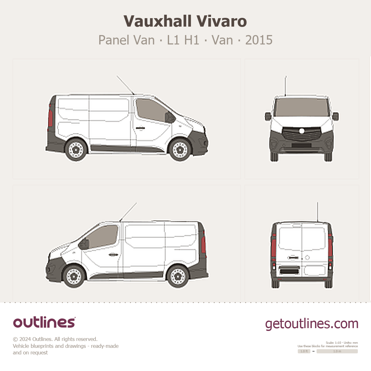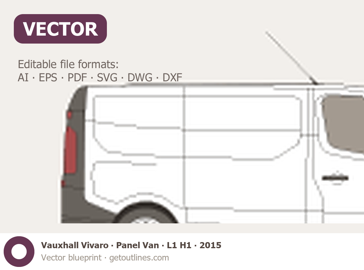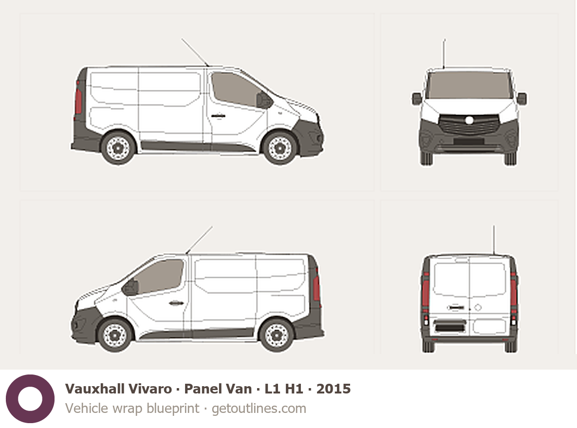 This 2015 Vauxhall Vivaro Panel Van L1 H1 Van blueprint helps designers, wrap studios, and 3D artists simplify their workflow and save valuable time for creative work instead of routine tasks.
