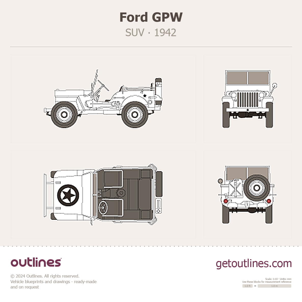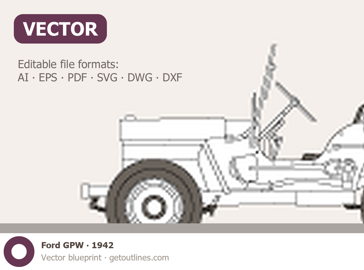Buy this Ford GPW blueprint and line drawing in high-quality editable vector file formats. Best for 3D and car wrap design.