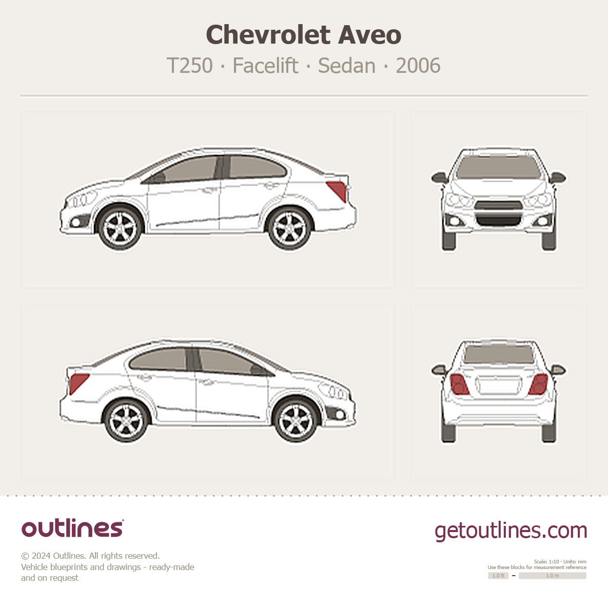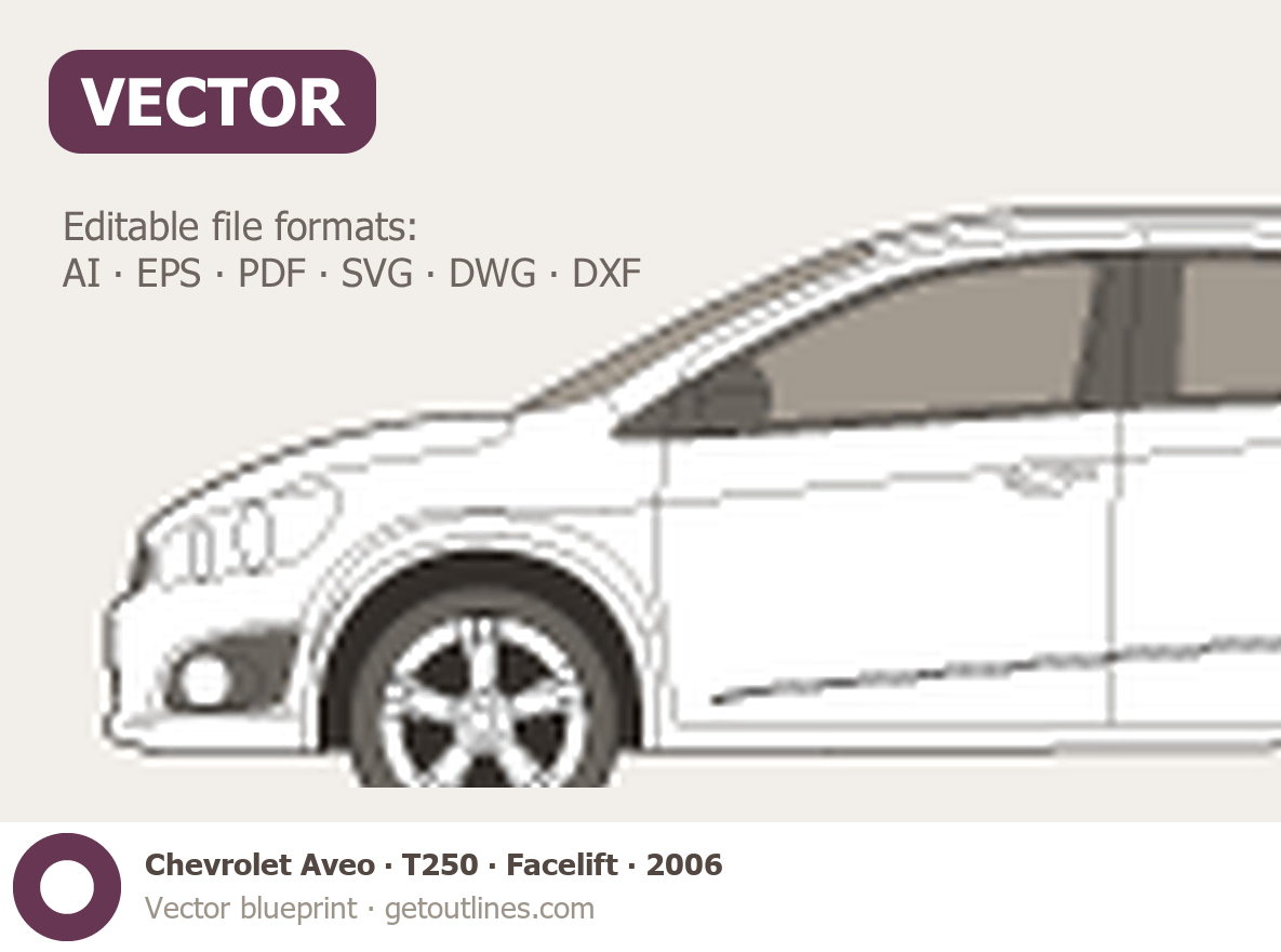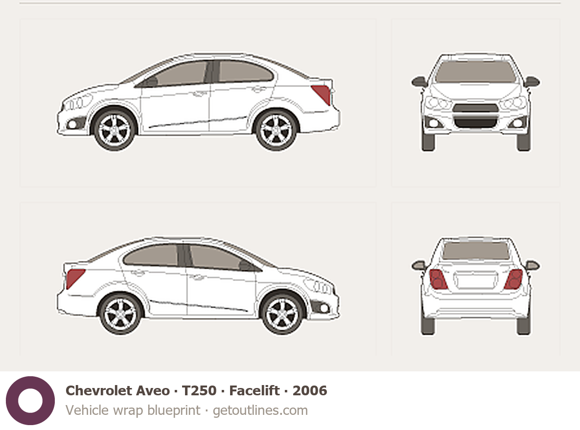 This 2006 Chevrolet Aveo T250 Facelift Sedan blueprint helps designers, wrap studios, and 3D artists simplify their workflow and save valuable time for creative work instead of routine tasks.