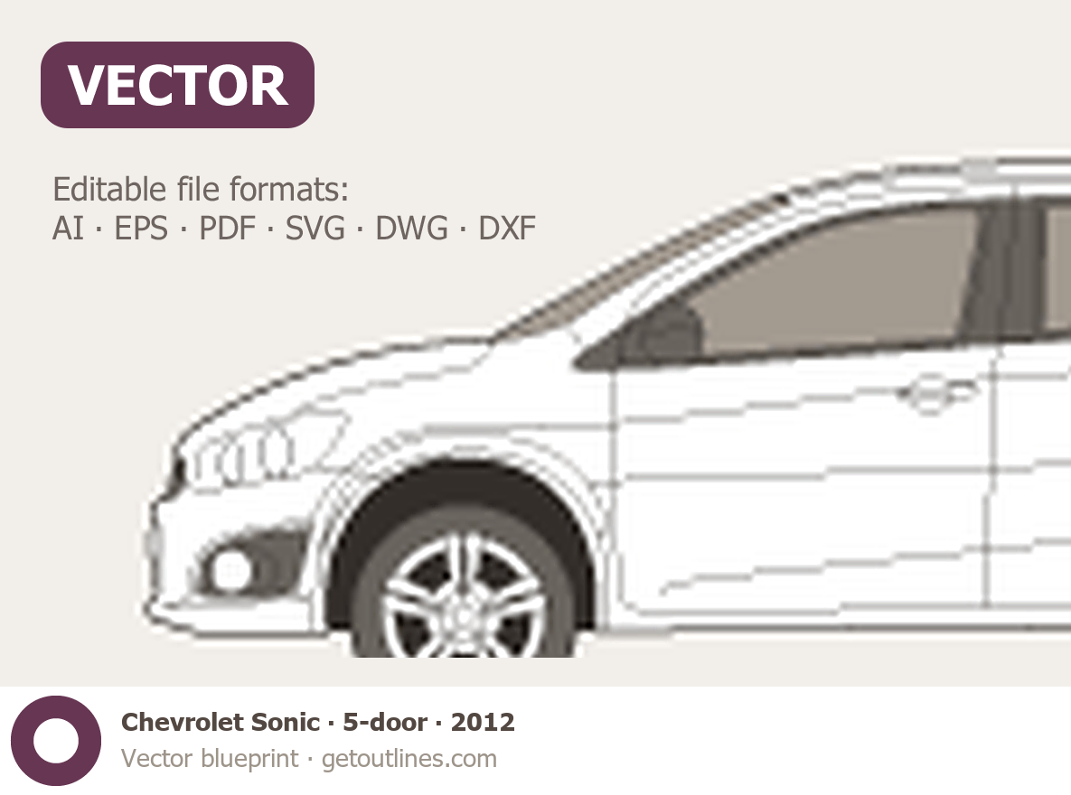 Buy this Chevrolet Sonic blueprint and line drawing in high-quality editable vector file formats. Best for 3D and car wrap design.