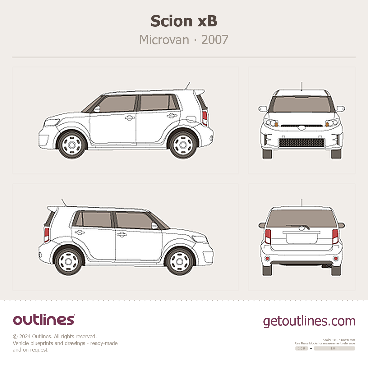 Buy this Scion xB blueprint and line drawing in high-quality editable vector file formats. Best for 3D and car wrap design.