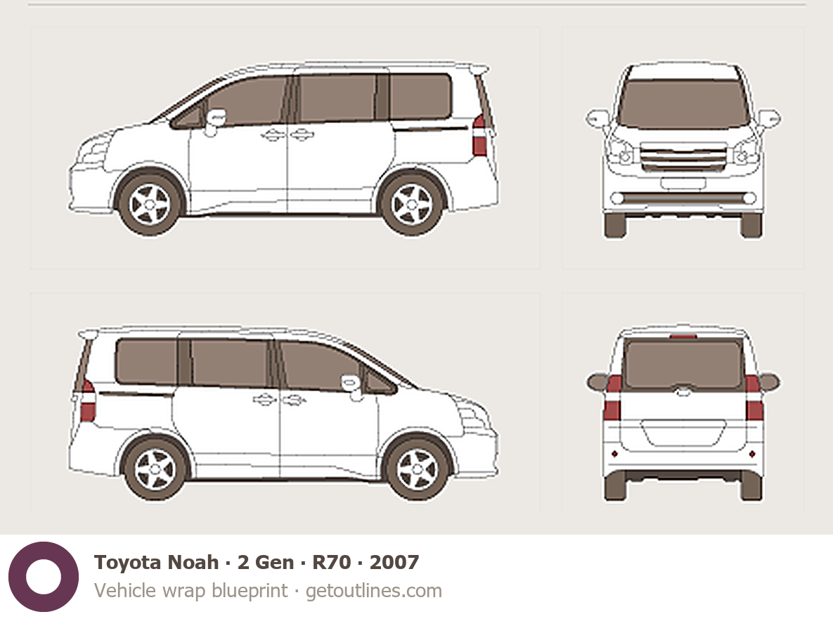 Buy this Toyota Noah 2 Gen ∙ R70 blueprint and line drawing in high-quality editable vector file formats. Best for 3D and car wrap design.