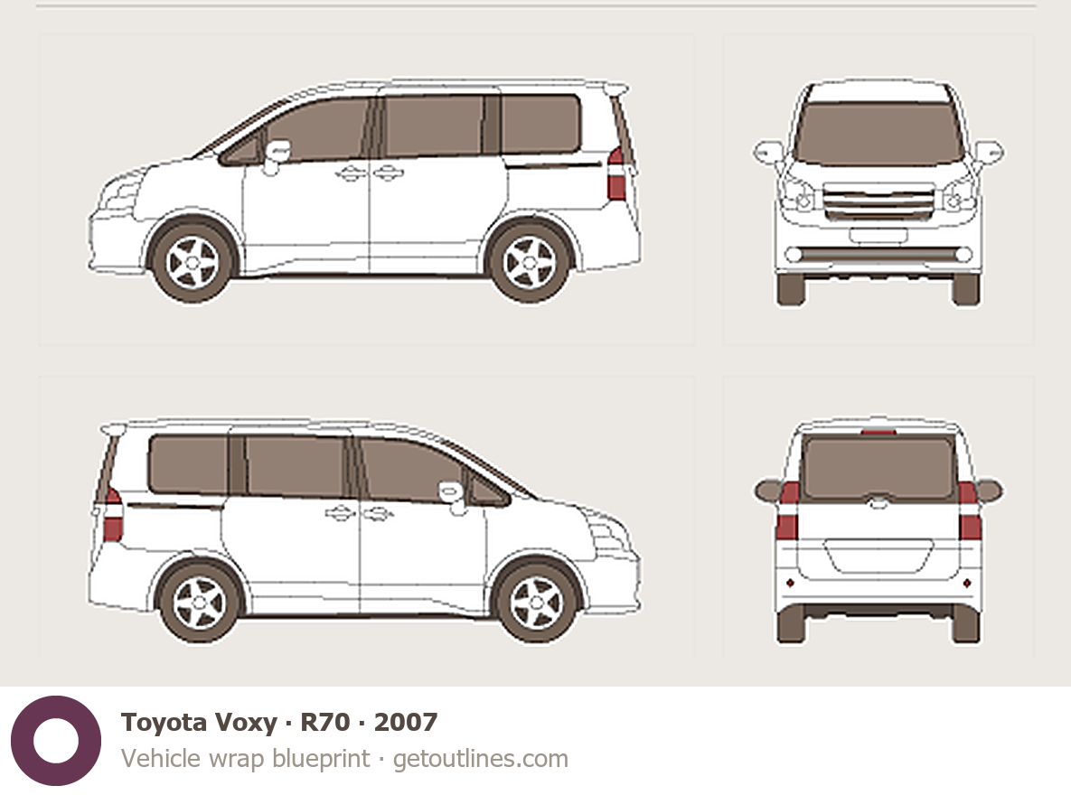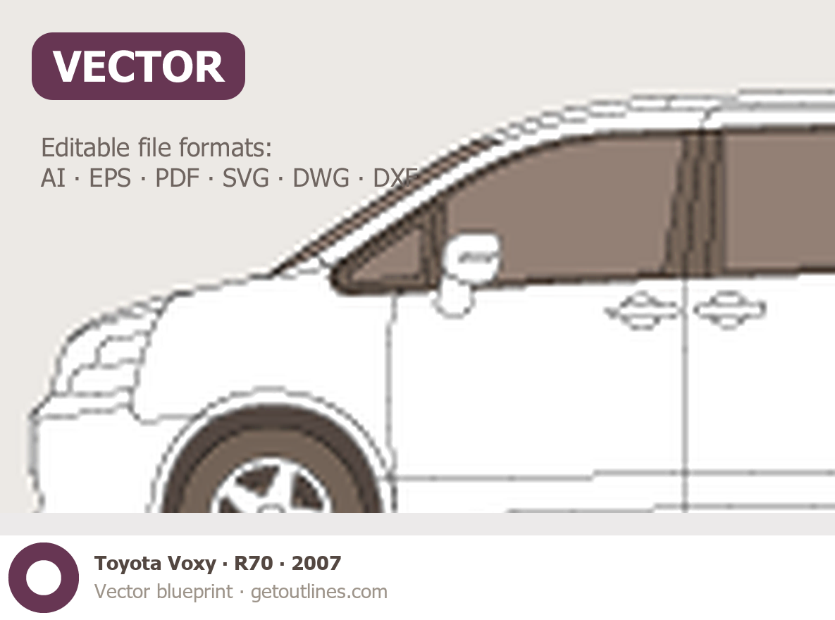 Buy this Toyota Voxy R70 blueprint and line drawing in high-quality editable vector file formats. Best for 3D and car wrap design.