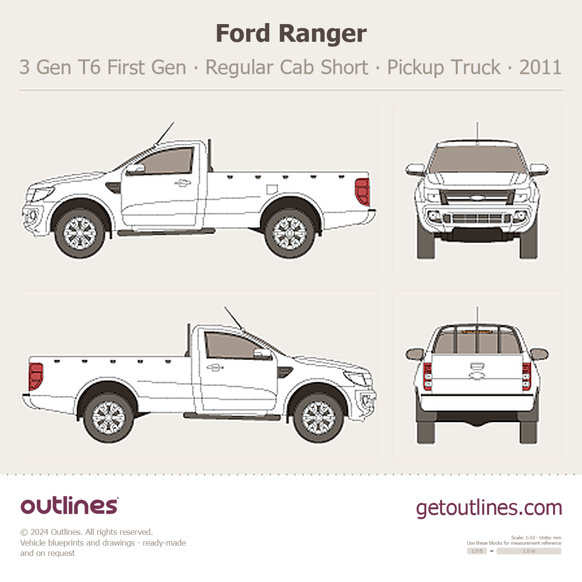 2011 Ford Ranger 3 Gen T6 First Gen Regular Cab Short Bed Facelift Pickup Truck blueprint
