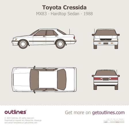 Buy this Toyota Mark II X80 Hardtop blueprint and line drawing in high-quality editable vector file formats. Best for 3D and car wrap design.