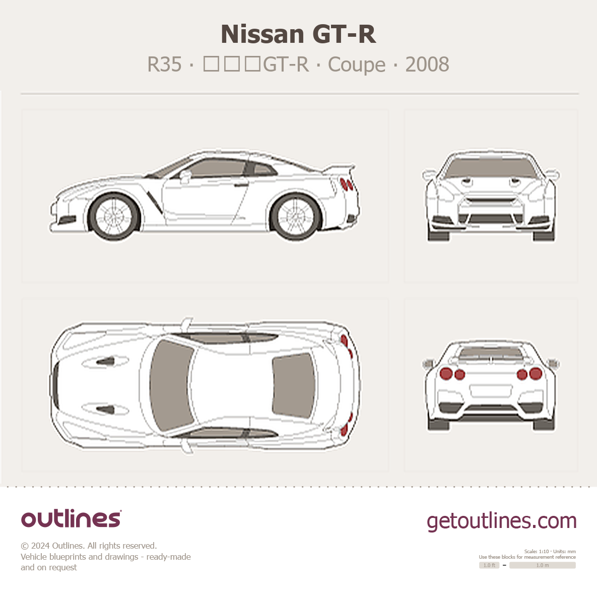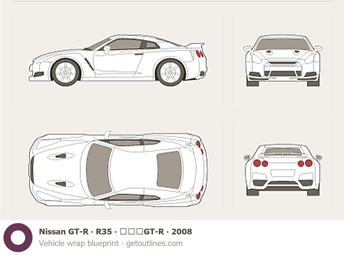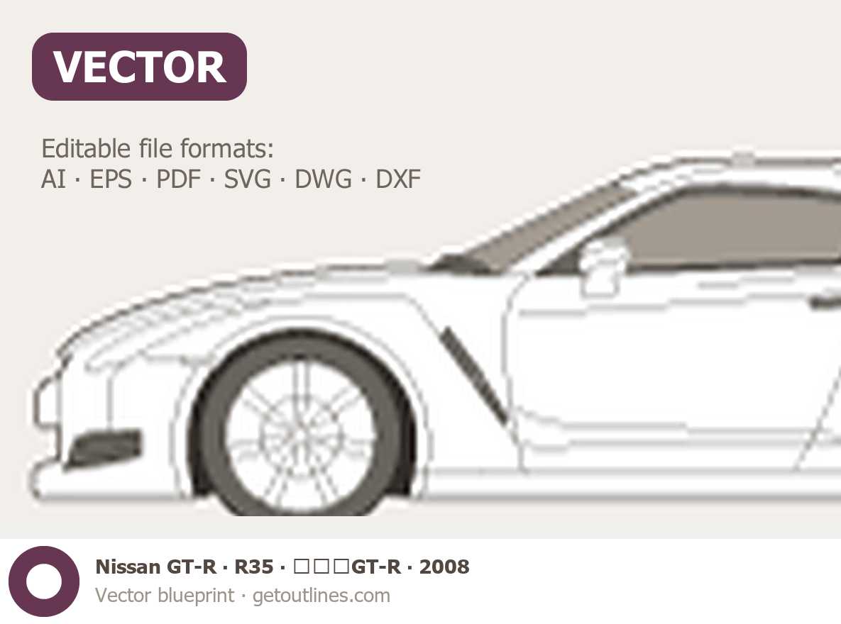 Buy this Nissan GT-R R35 blueprint and line drawing in high-quality editable vector file formats. Best for 3D and car wrap design.
