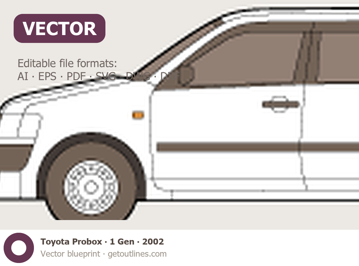This 2002 Toyota Probox 1 Gen Wagon blueprint helps designers, wrap studios, and 3D artists simplify their workflow and save valuable time for creative work instead of routine tasks.