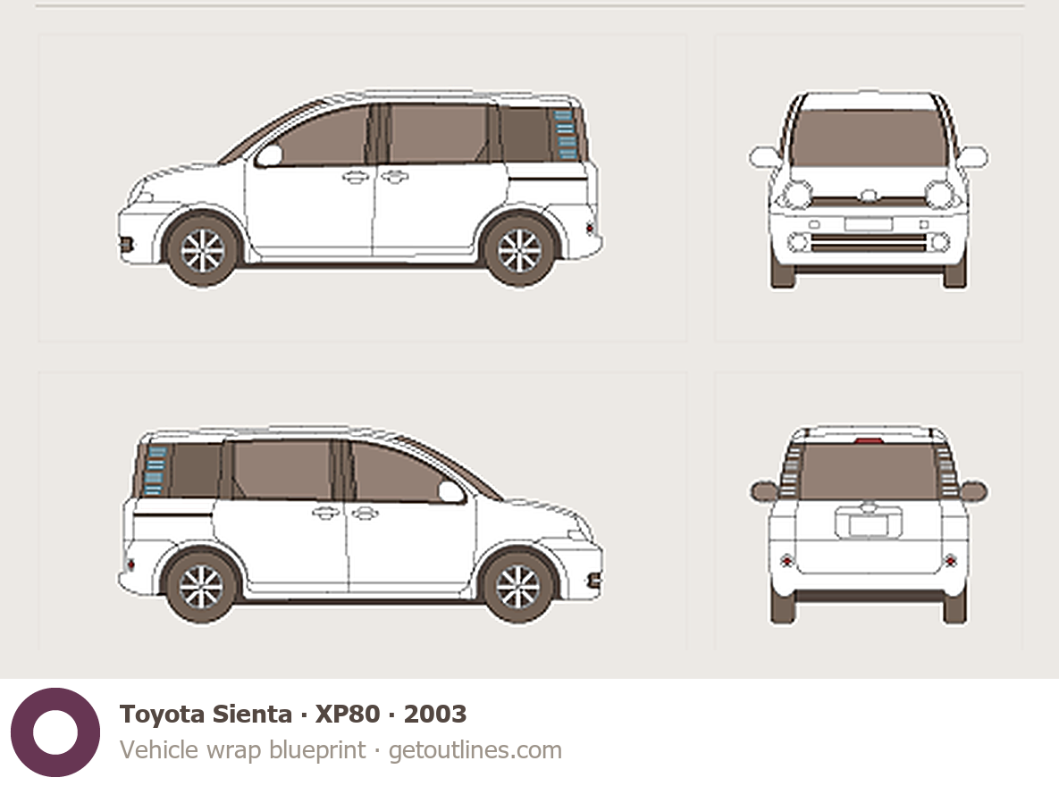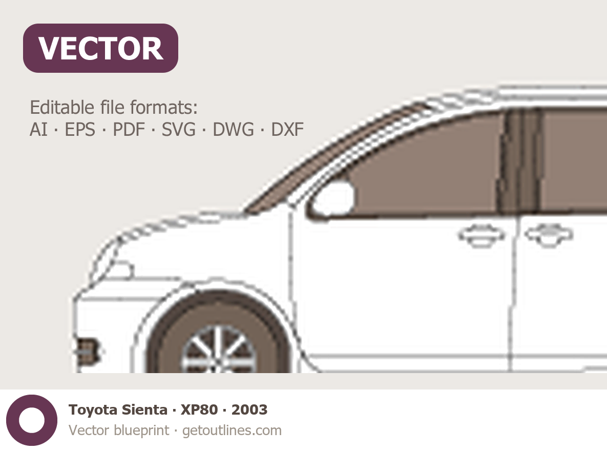 Buy this Toyota Sienta XP80 blueprint and line drawing in high-quality editable vector file formats. Best for 3D and car wrap design.