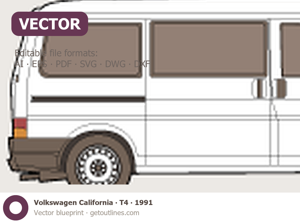 This 1991 Volkswagen California T4 Minivan blueprint helps designers, wrap studios, and 3D artists simplify their workflow and save valuable time for creative work instead of routine tasks.
