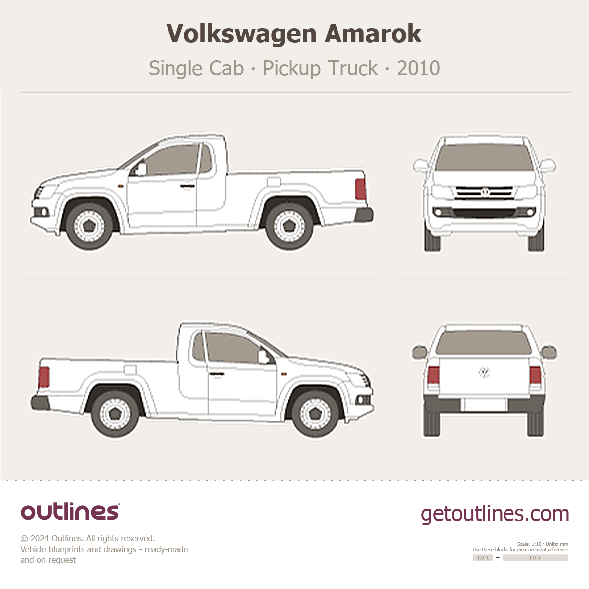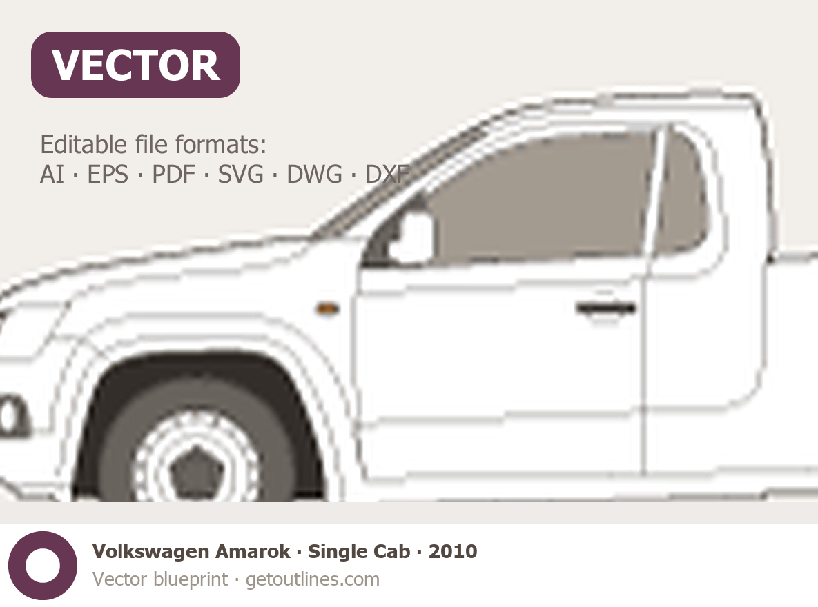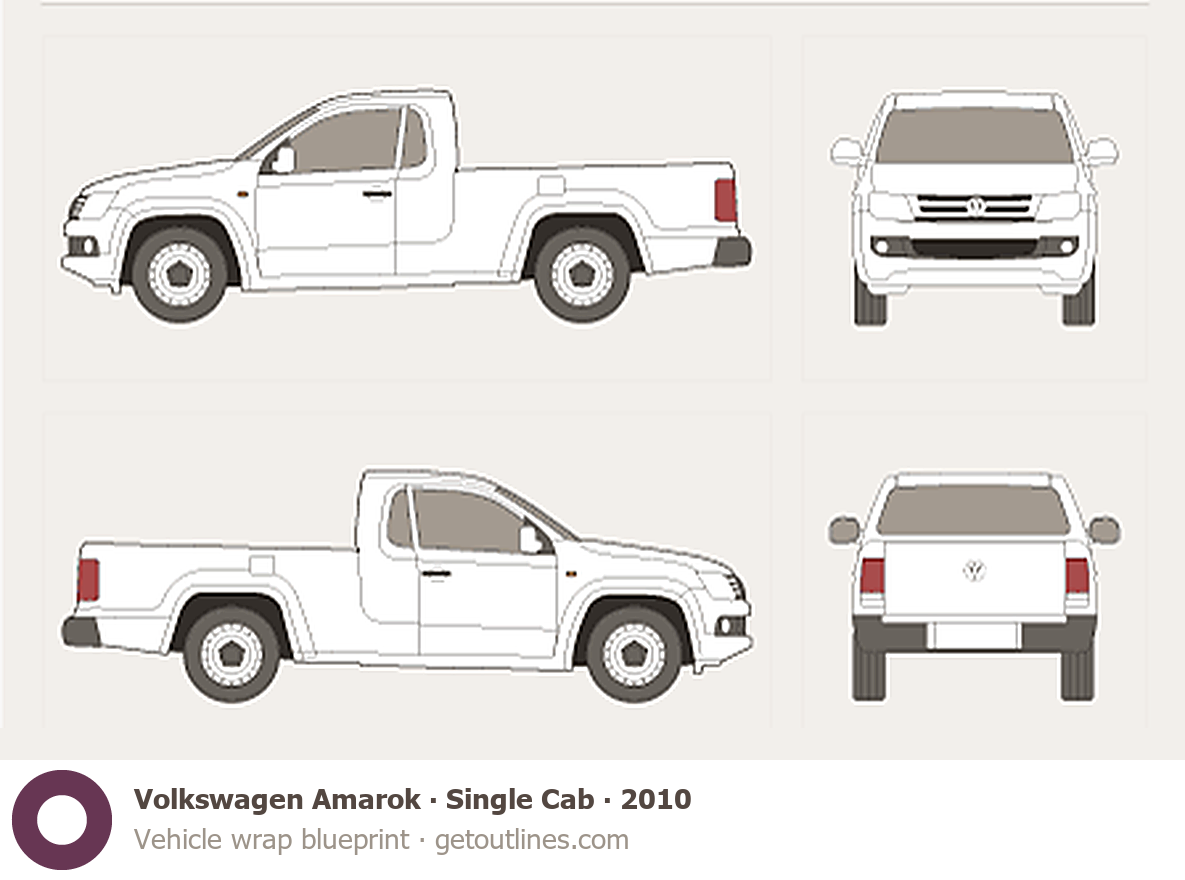 This 2010 Volkswagen Amarok Single Cab Pickup Truck blueprint helps designers, wrap studios, and 3D artists simplify their workflow and save valuable time for creative work instead of routine tasks.