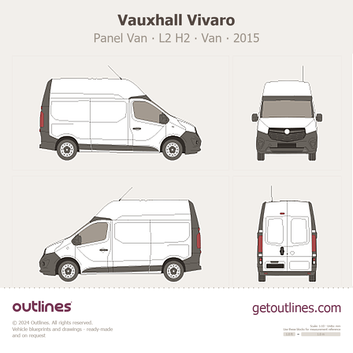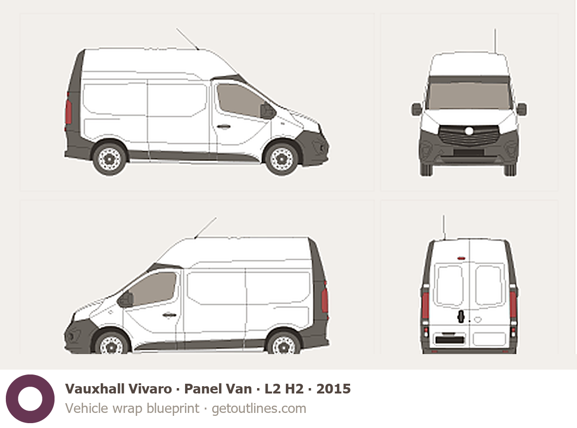 This 2015 Vauxhall Vivaro Panel Van L2 H2 Van blueprint helps designers, wrap studios, and 3D artists simplify their workflow and save valuable time for creative work instead of routine tasks.