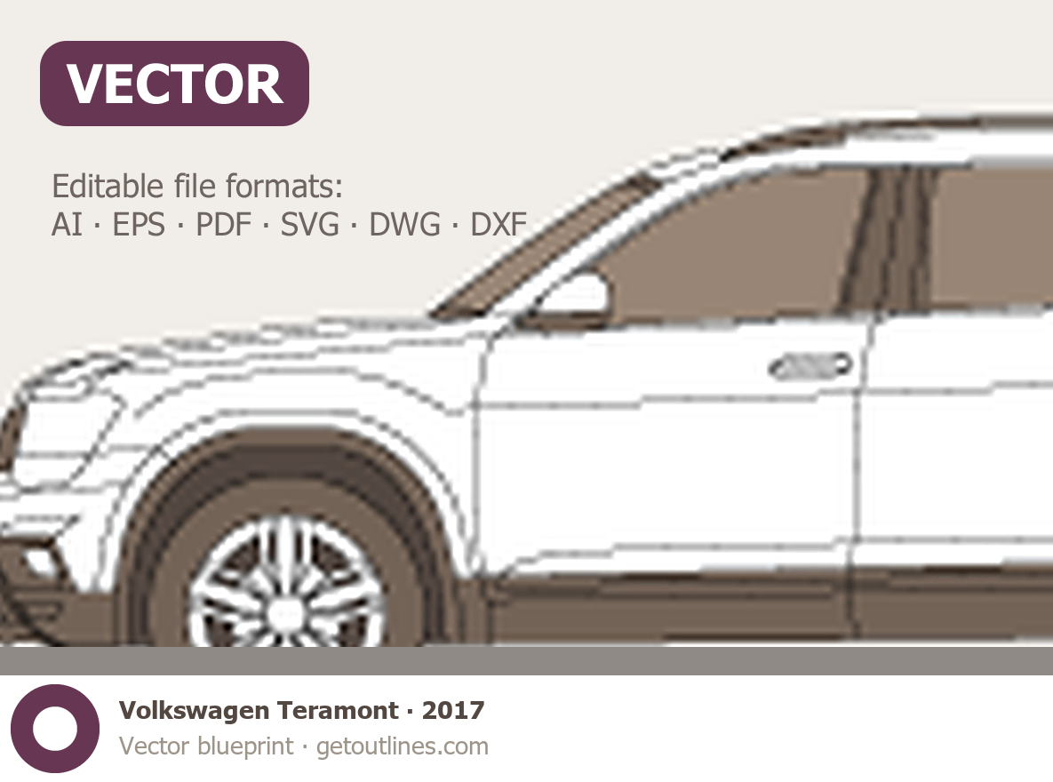 This 2017 Volkswagen Teramont SUV blueprint helps designers, wrap studios, and 3D artists simplify their workflow and save valuable time for creative work instead of routine tasks.