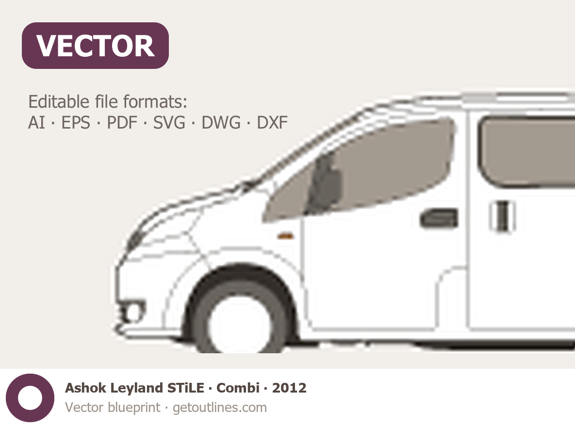 Buy this Ashok Leyland STiLE Combi blueprint and line drawing in high-quality editable vector file formats. Best for 3D and car wrap design.