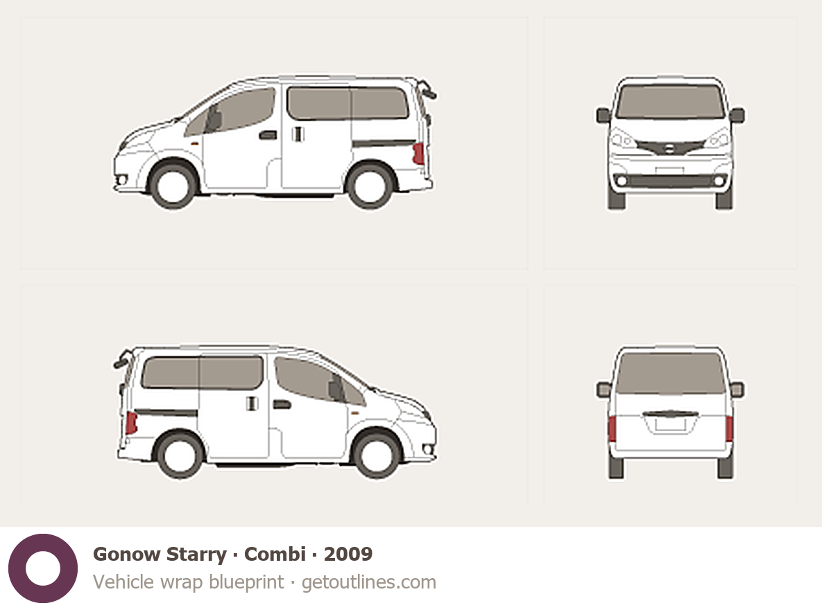 This 2009 Gonow Starry Combi Wagon blueprint helps designers, wrap studios, and 3D artists simplify their workflow and save valuable time for creative work instead of routine tasks.