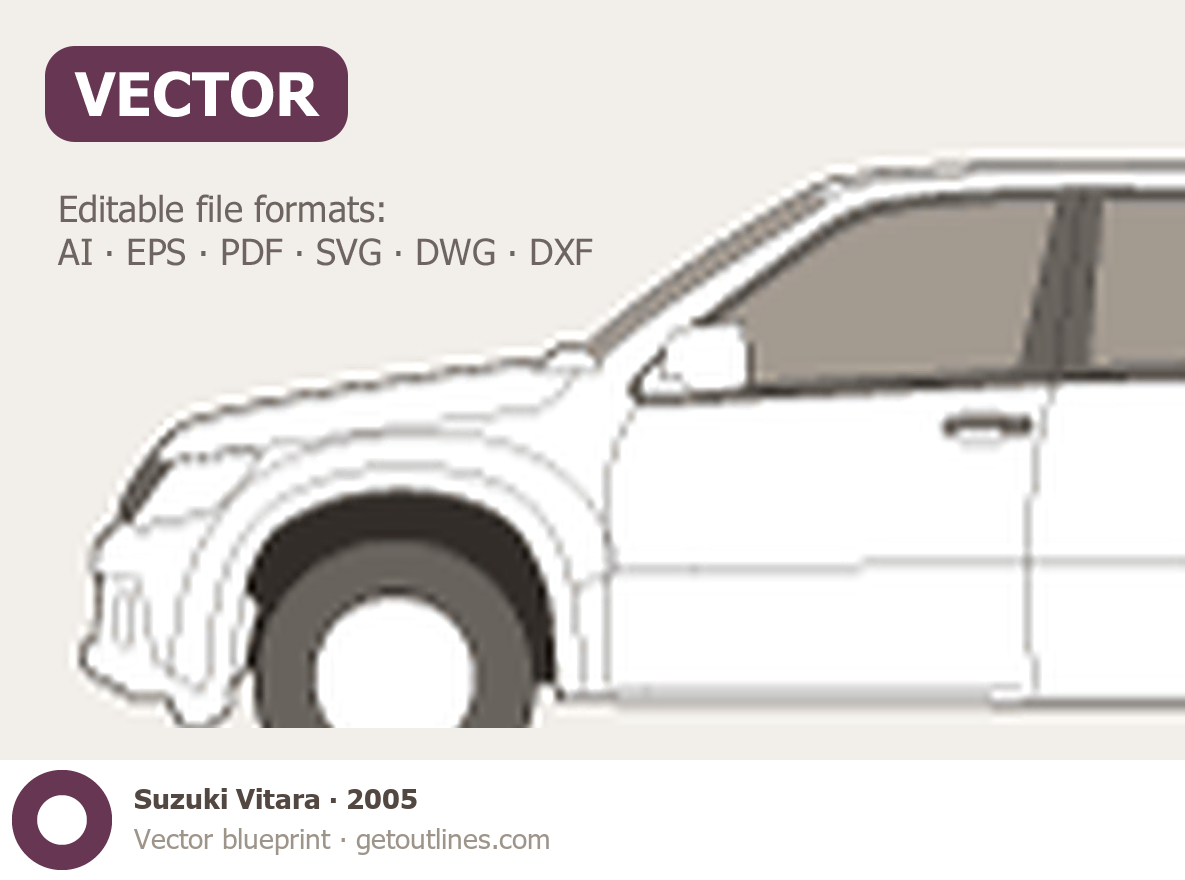 Buy this Suzuki Vitara blueprint and line drawing in high-quality editable vector file formats. Best for 3D and car wrap design.