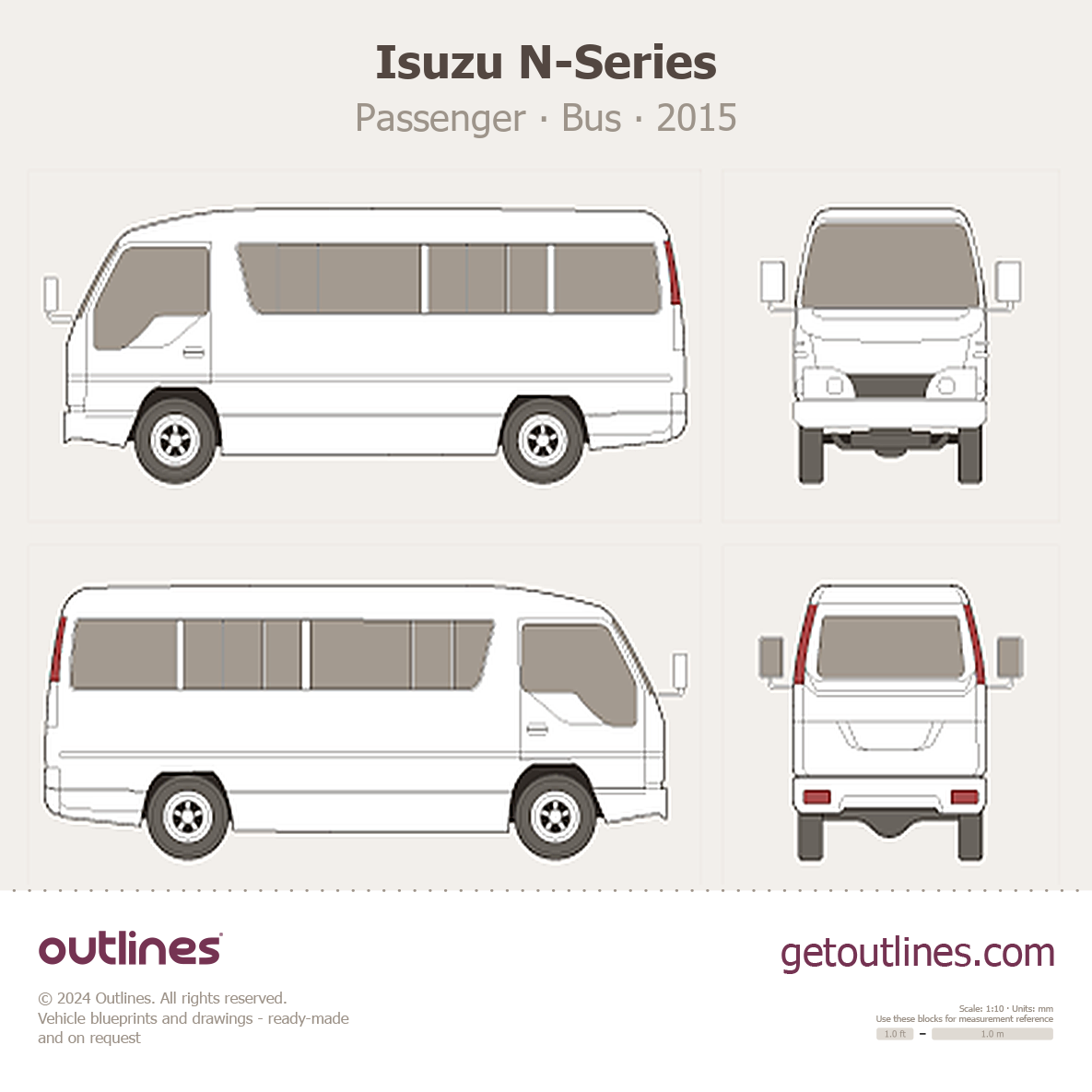 This 2015 Isuzu N-Series Passenger Bus blueprint helps designers, wrap studios, and 3D artists simplify their workflow and save valuable time for creative work instead of routine tasks.