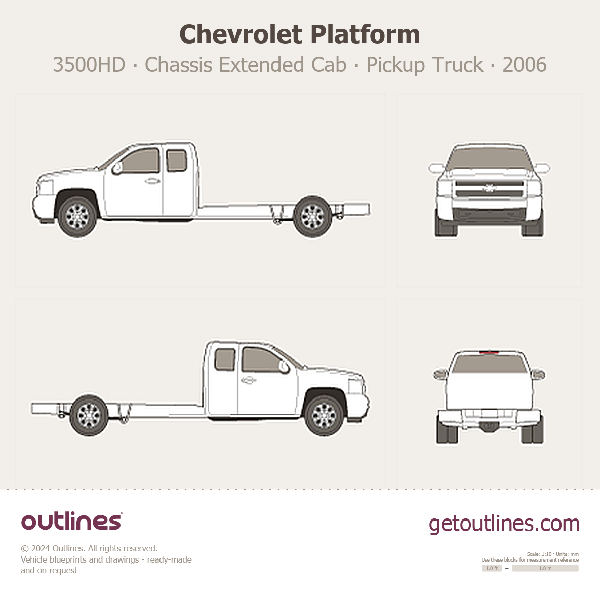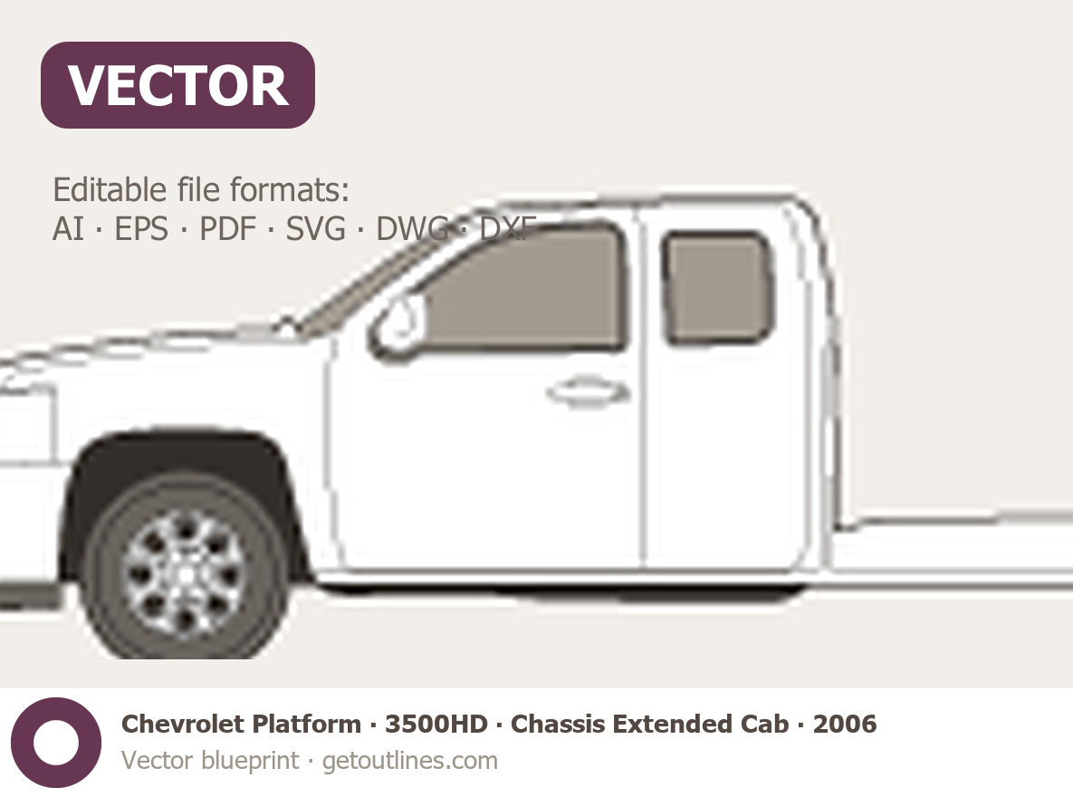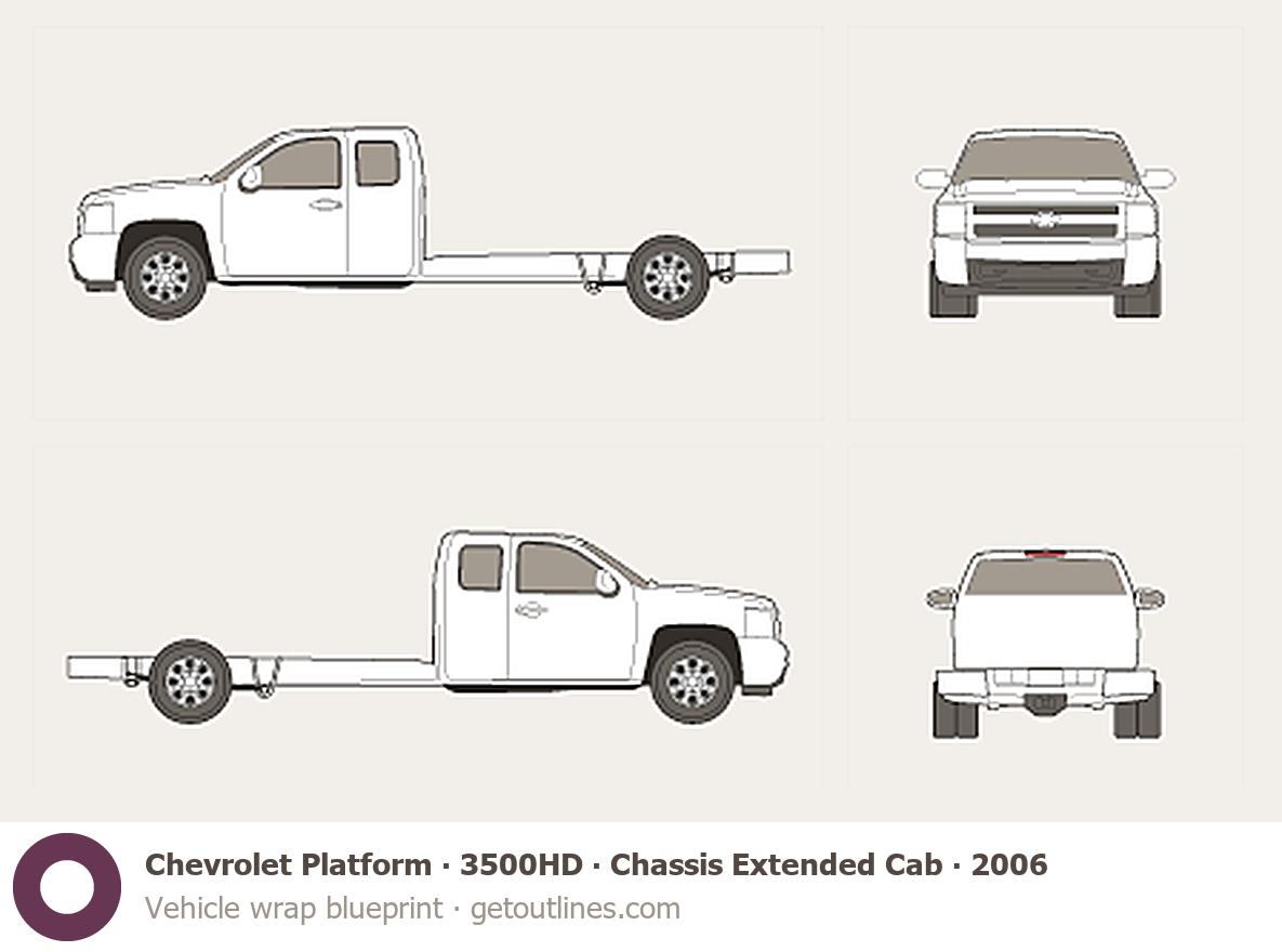 This 2006 Chevrolet Platform 3500HD Chassis Extended Cab Pickup Truck blueprint helps designers, wrap studios, and 3D artists simplify their workflow and save valuable time for creative work instead of routine tasks.