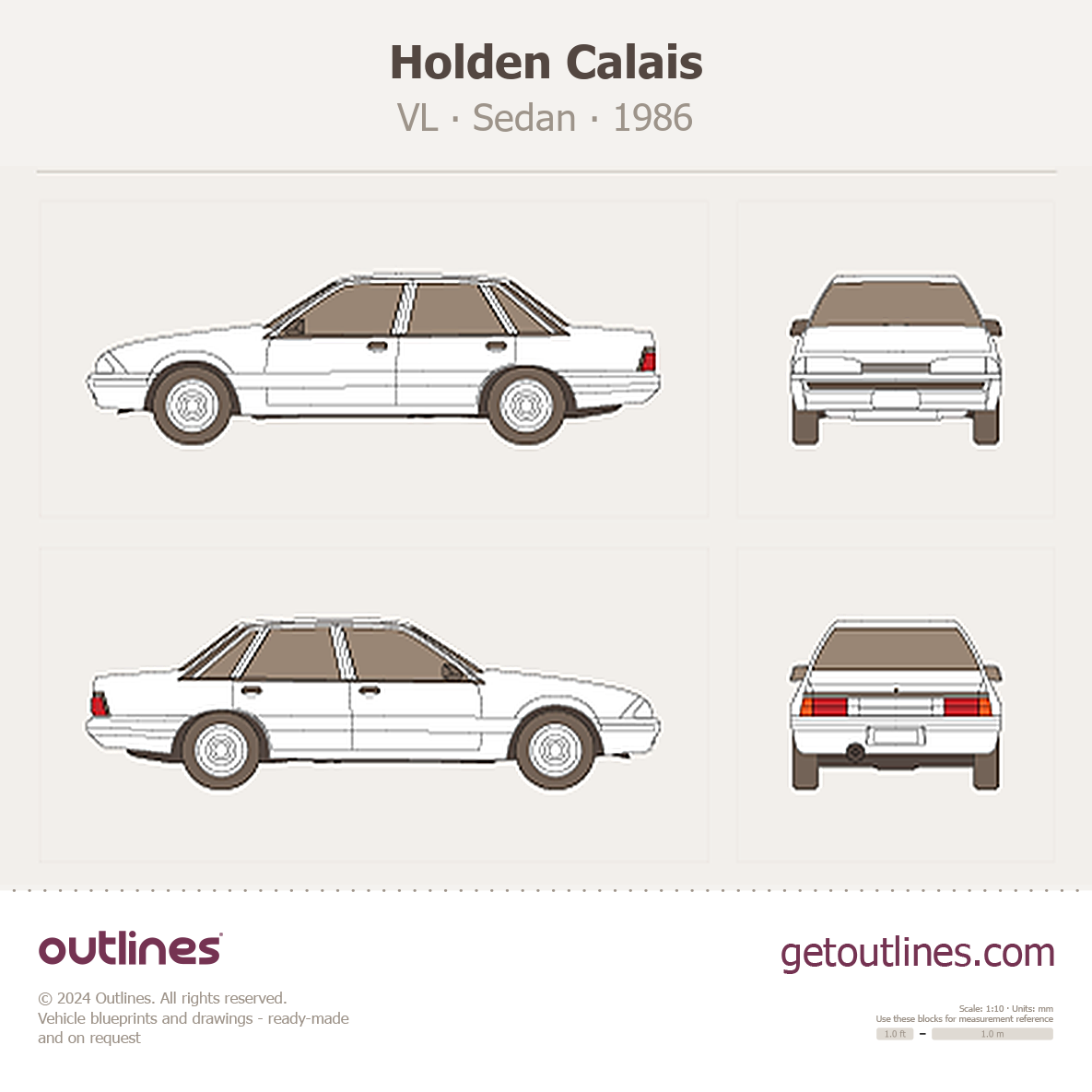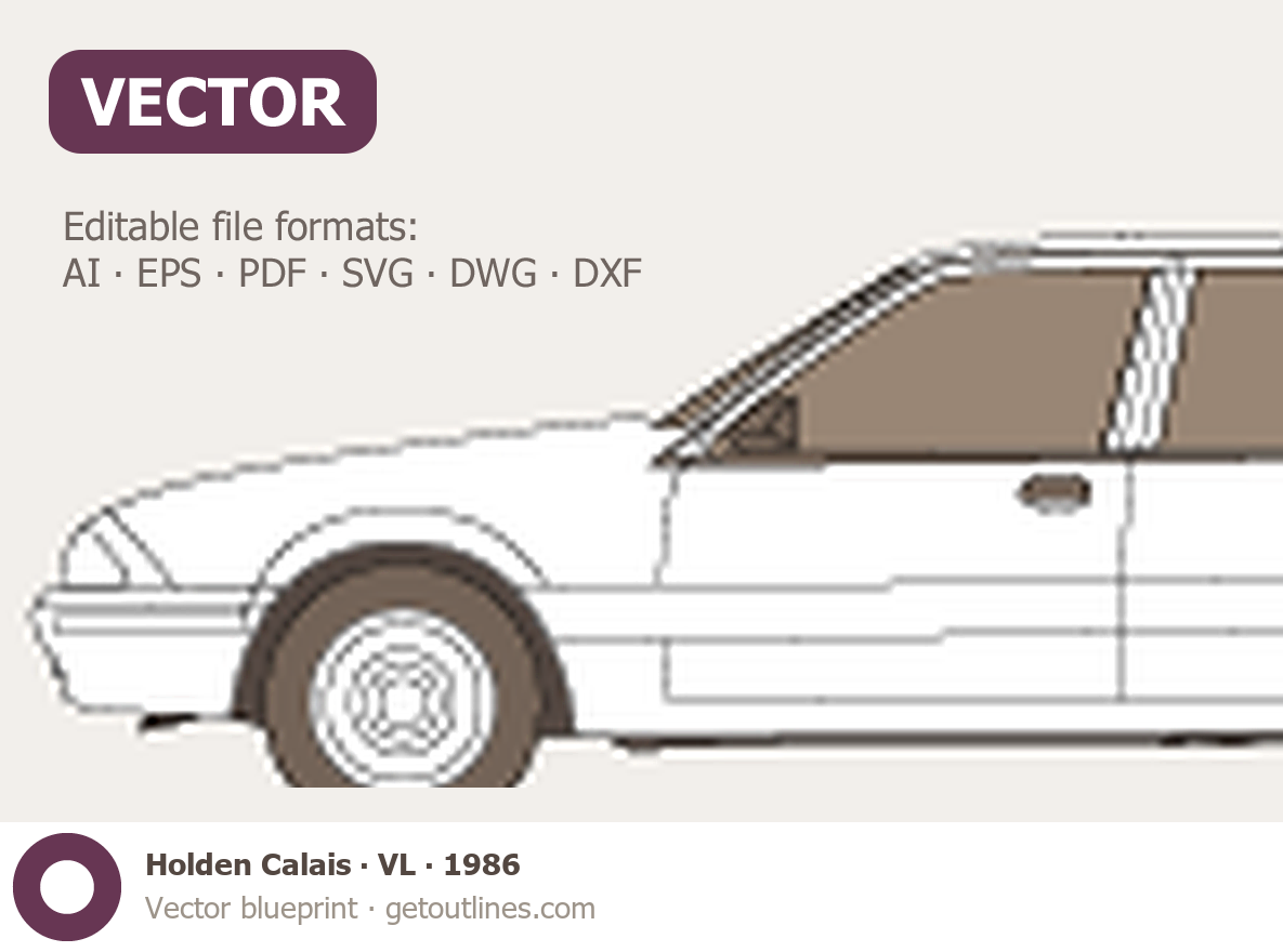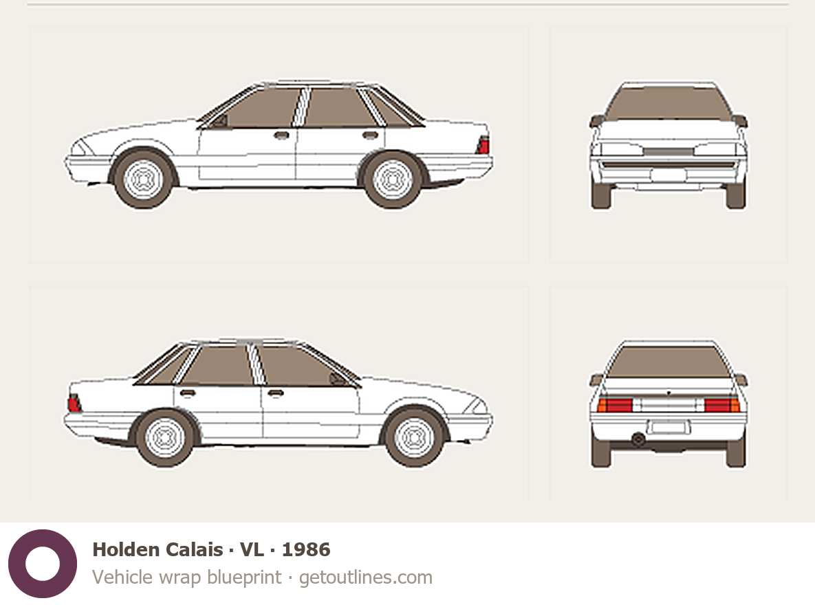 Buy this Holden Calais VL blueprint and line drawing in high-quality editable vector file formats. Best for 3D and car wrap design.