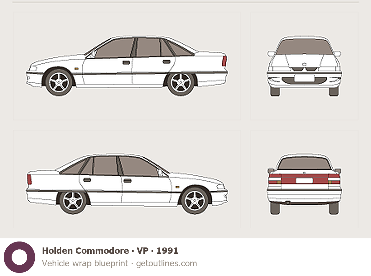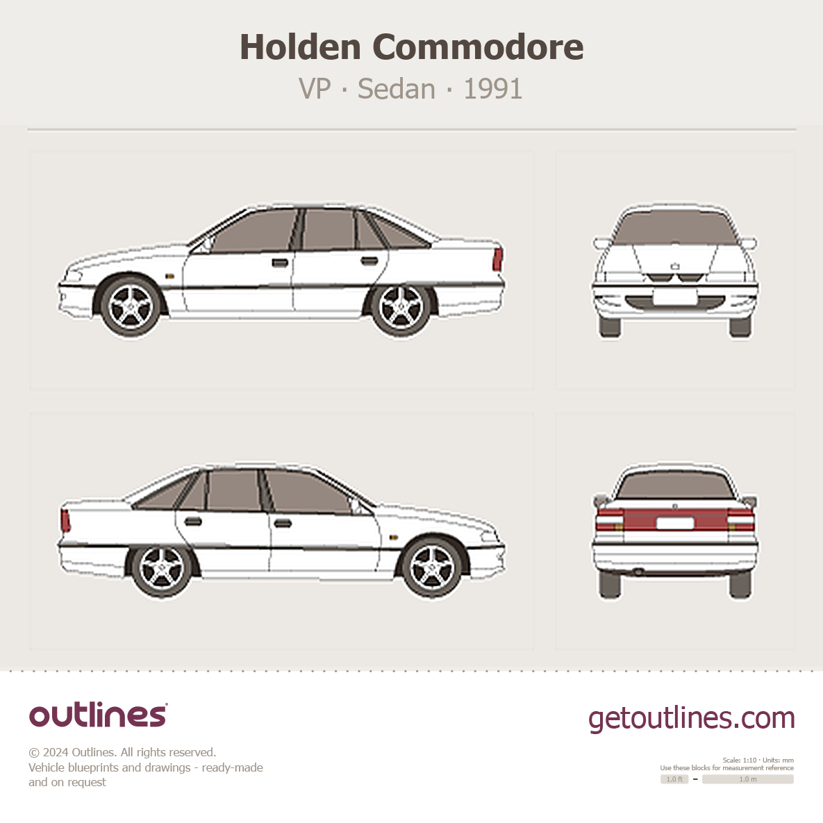 Buy this Holden Commodore VP blueprint and line drawing in high-quality editable vector file formats. Best for 3D and car wrap design.