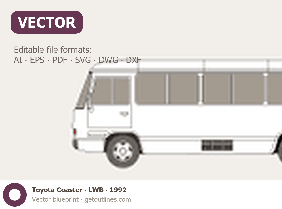 This 1992 Toyota Coaster LWB Bus blueprint helps designers, wrap studios, and 3D artists simplify their workflow and save valuable time for creative work instead of routine tasks.