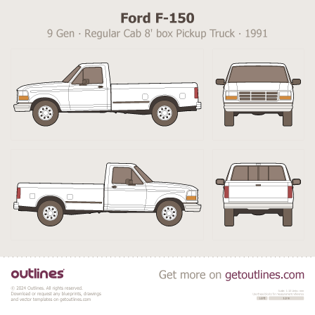 Buy this Ford F-150 9 Gen Mk IX blueprint and line drawing in high-quality editable vector file formats. Best for 3D and car wrap design.
