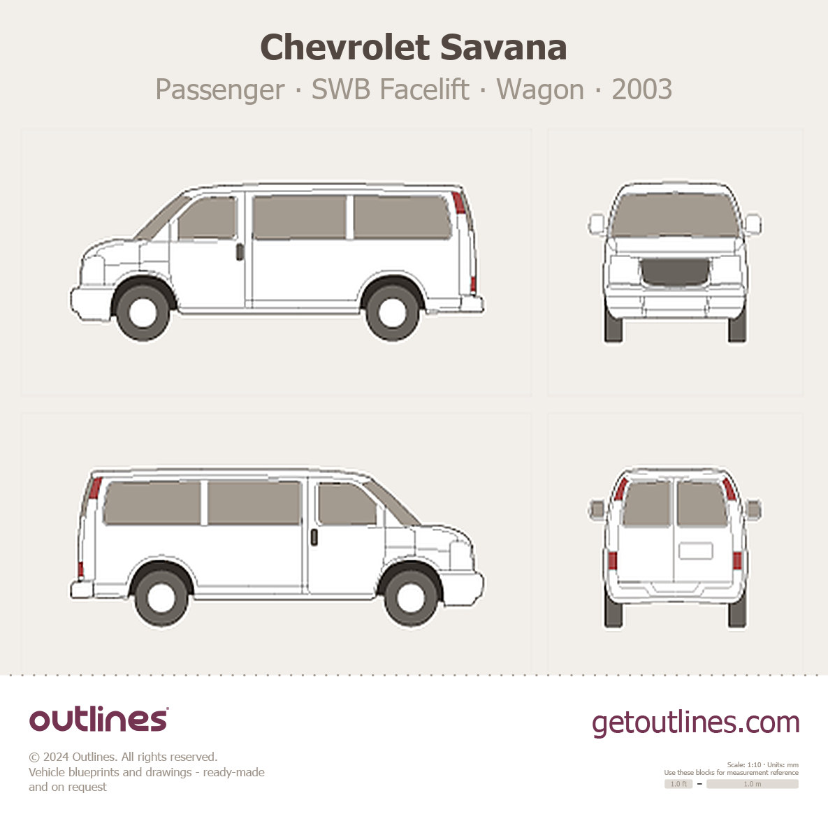 This is a blueprint of the Savana, produced by carmaker Chevrolet in 2003 - Present (2025, 2026). It features a Wagon body design and is classified as a Commercial vehicle.