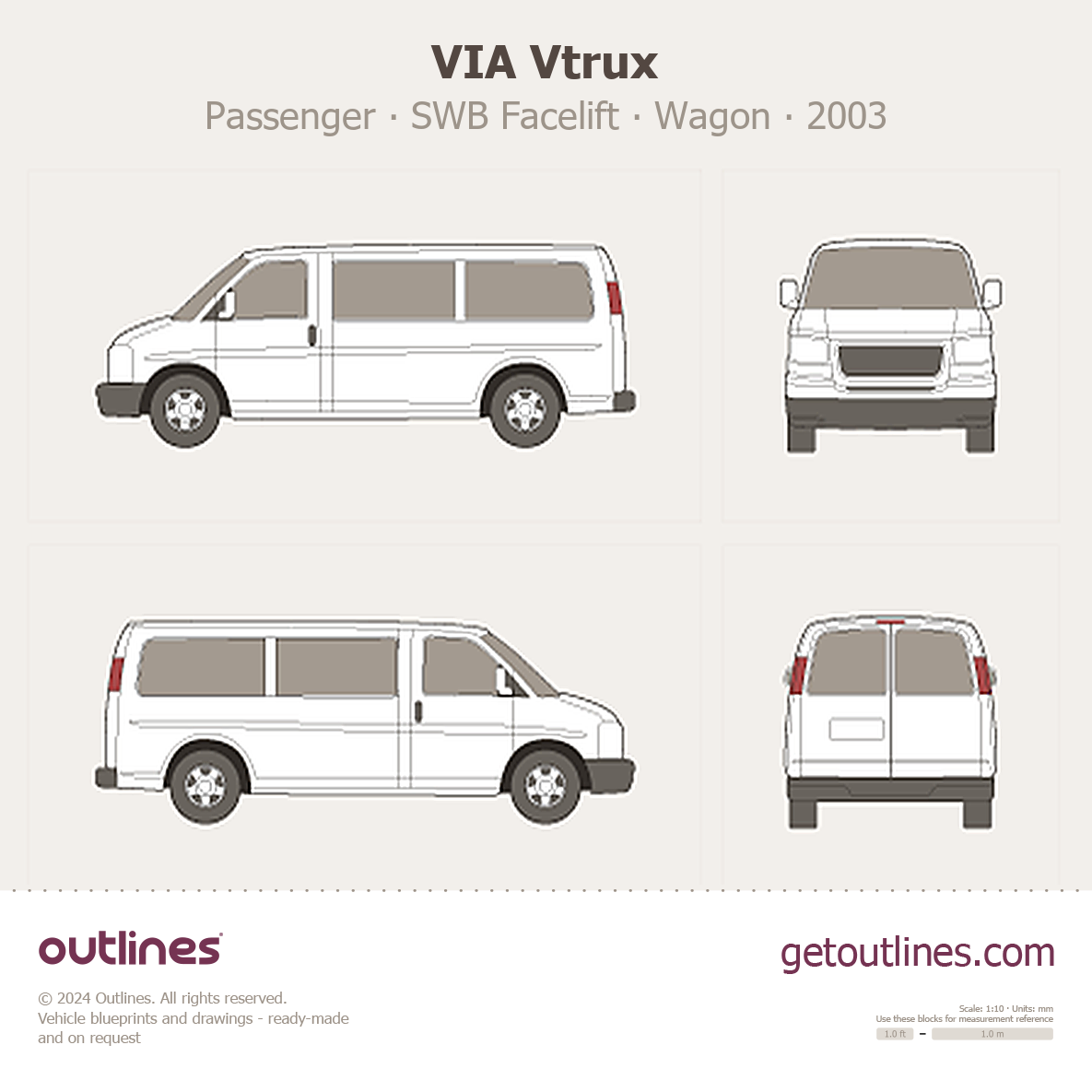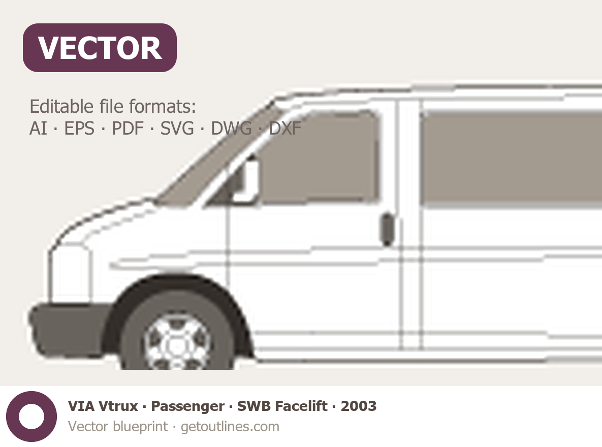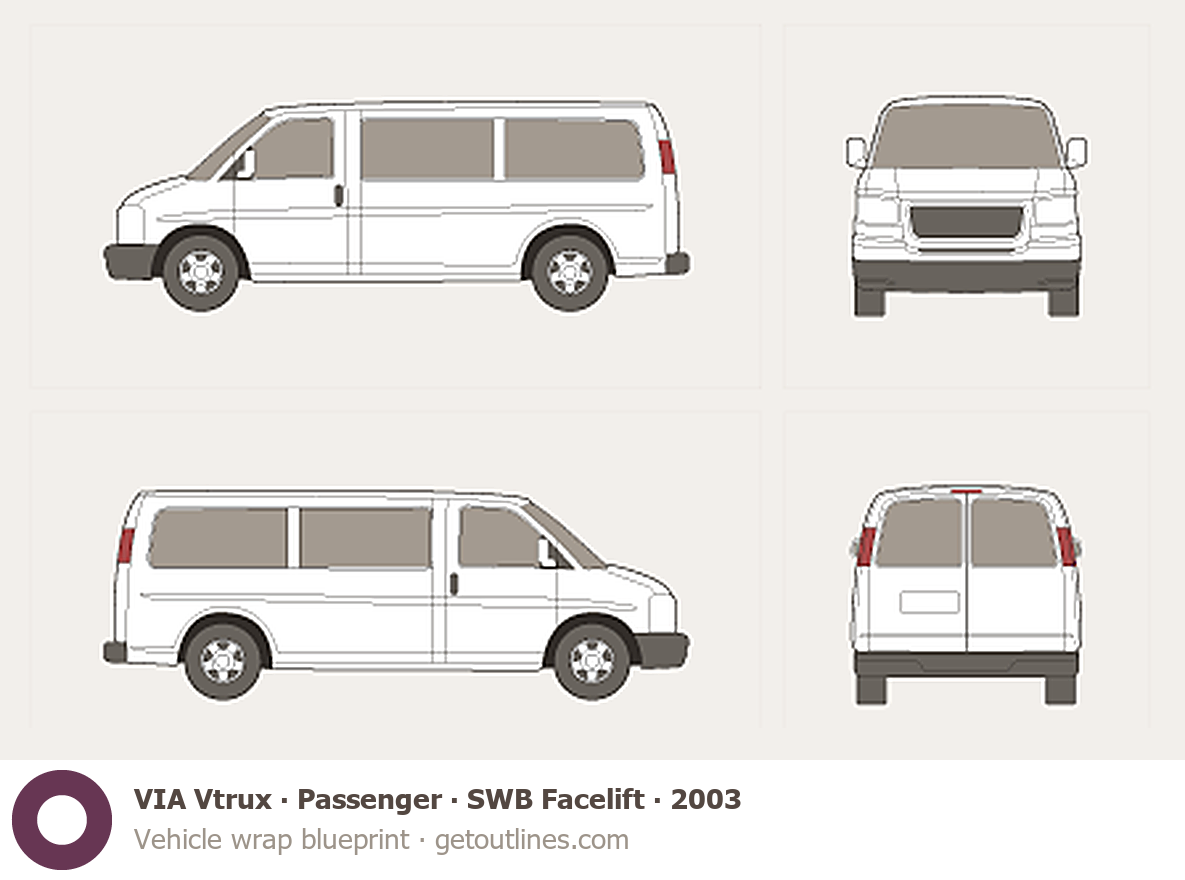 This 2003 VIA Vtrux Passenger SWB Facelift Wagon blueprint helps designers, wrap studios, and 3D artists simplify their workflow and save valuable time for creative work instead of routine tasks.