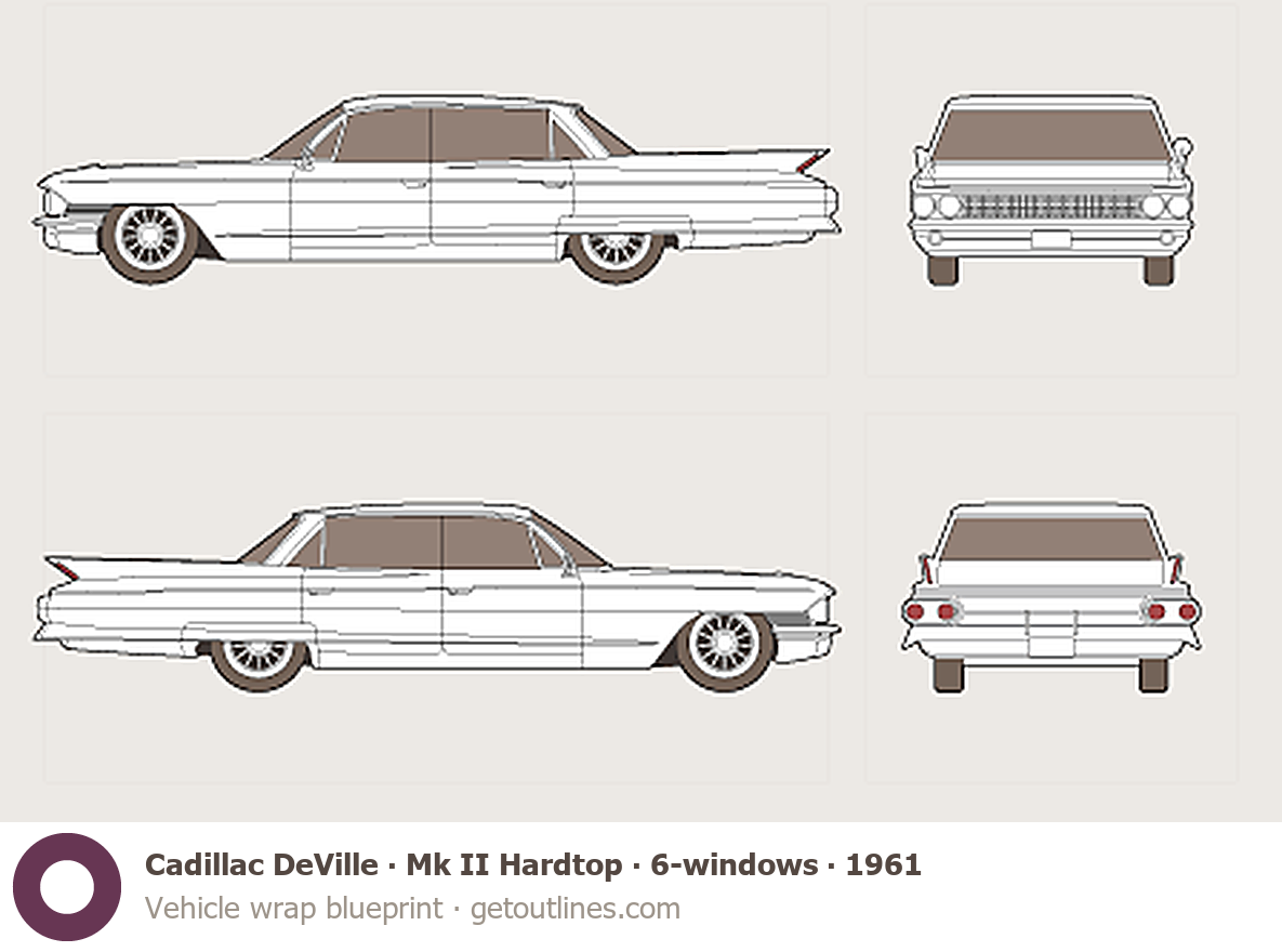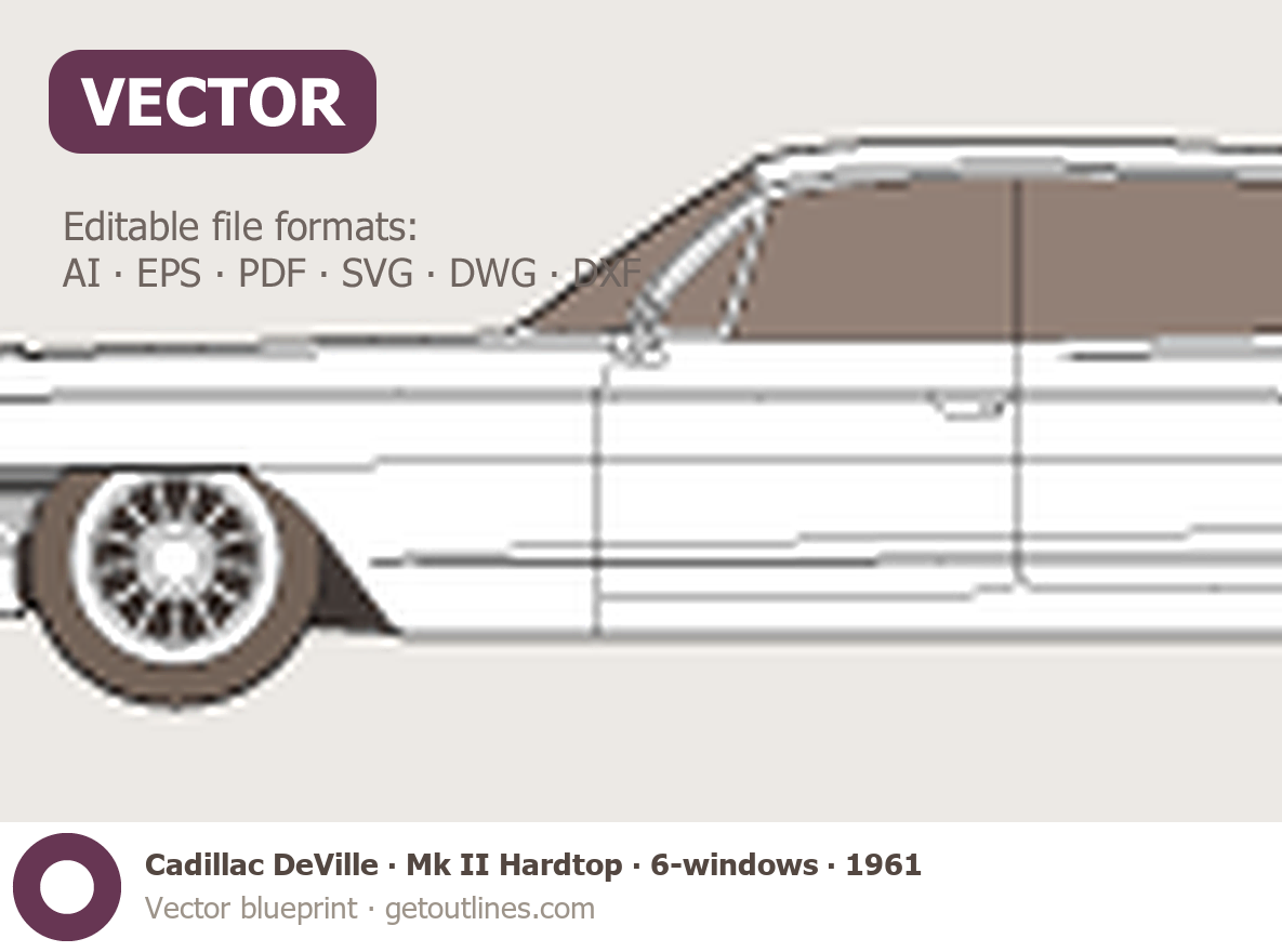 Buy this Cadillac DeVille Mk II Hardtop blueprint and line drawing in high-quality editable vector file formats. Best for 3D and car wrap design.