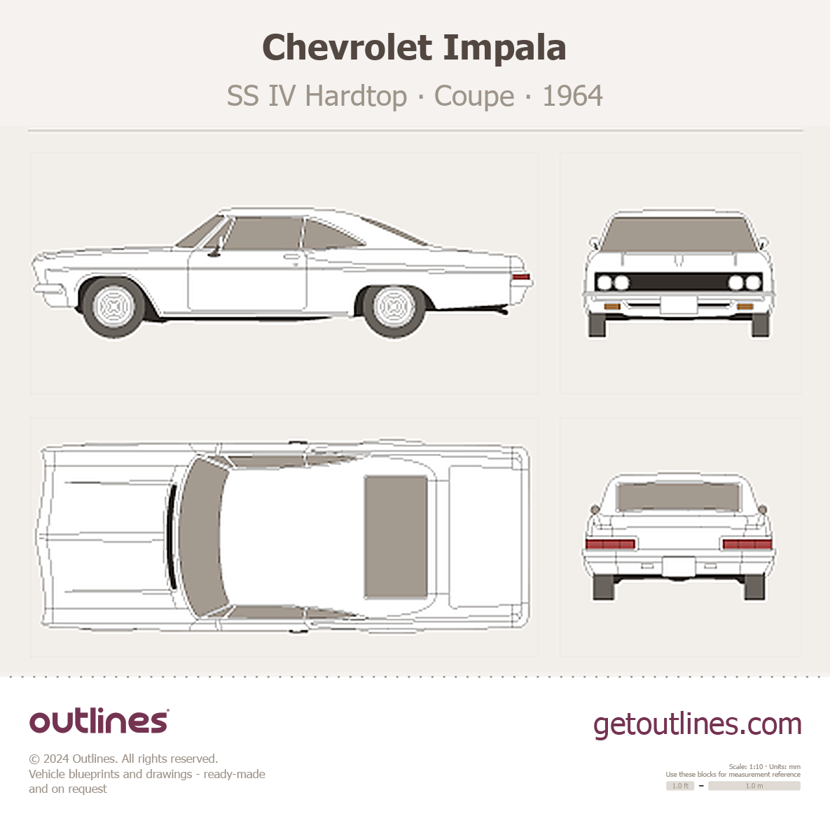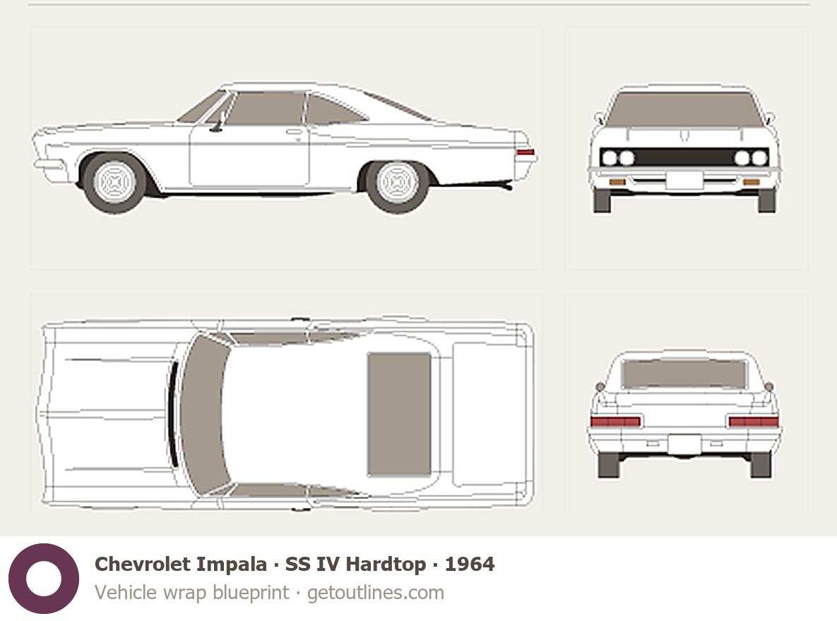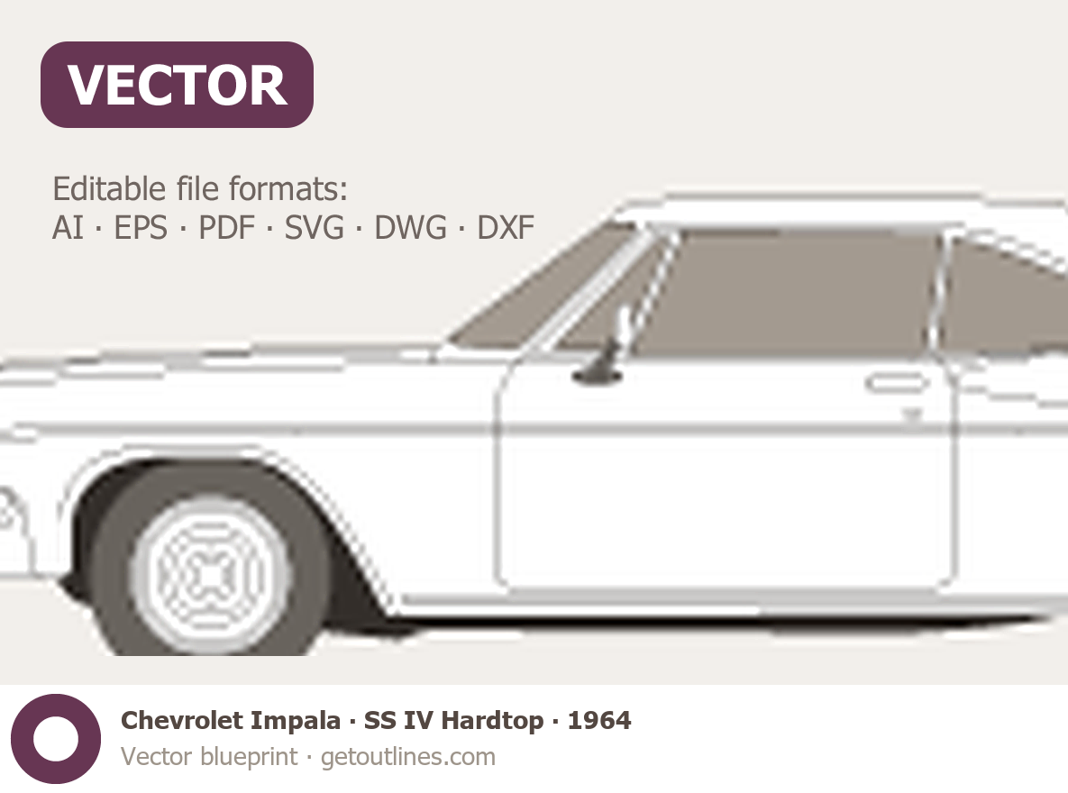 Buy this Chevrolet Impala SS IV Hardtop blueprint and line drawing in high-quality editable vector file formats. Best for 3D and car wrap design.