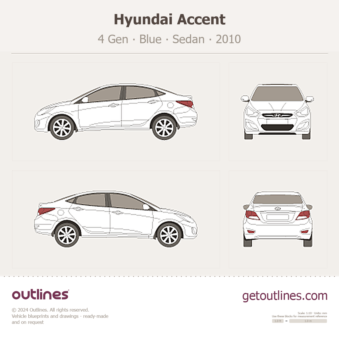 2010 Hyundai Accent 4 Gen WIT Korea Sedan blueprint
