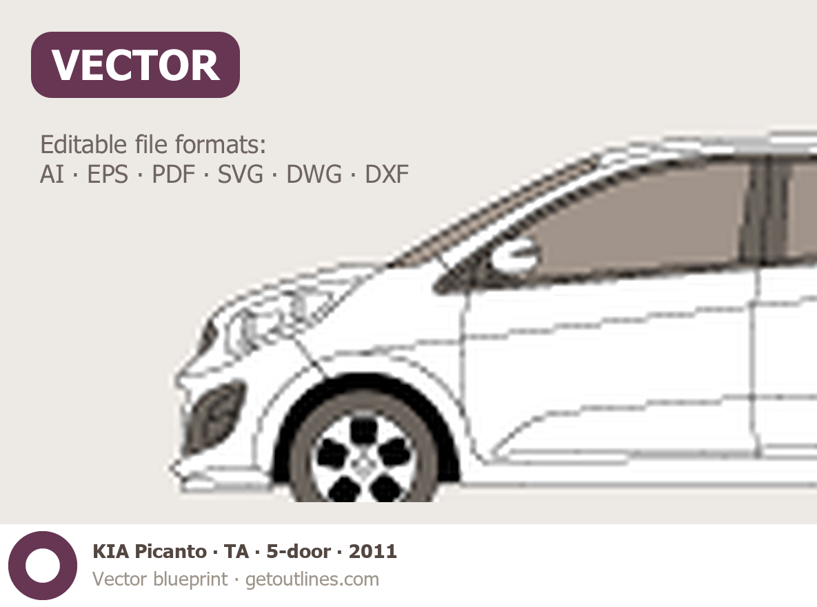 Buy this KIA Picanto TA blueprint and line drawing in high-quality editable vector file formats. Best for 3D and car wrap design.